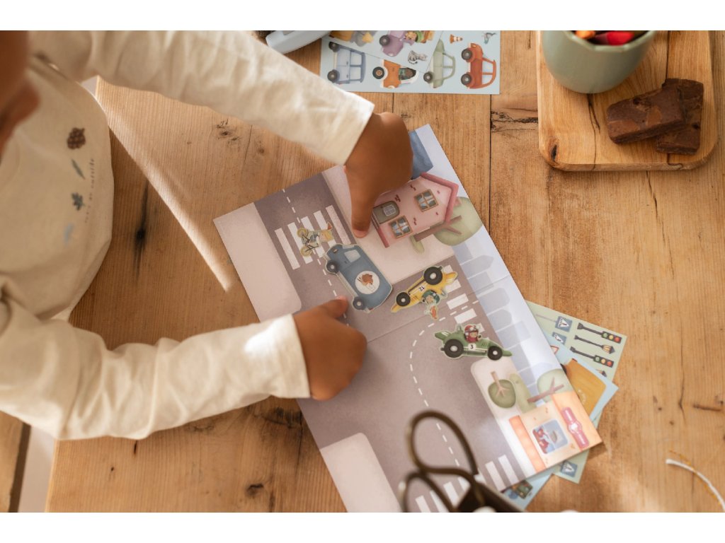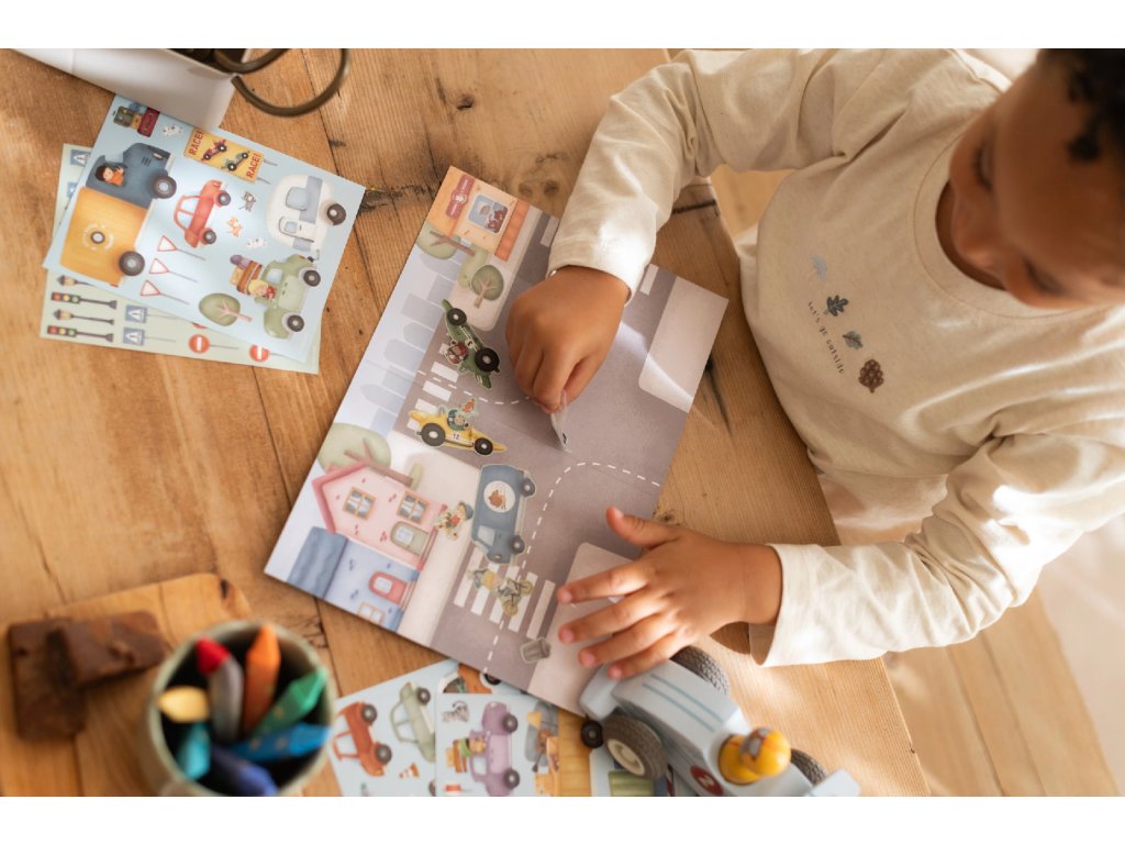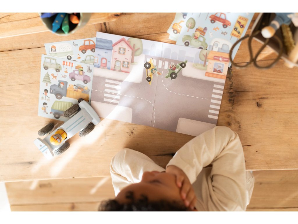 Fantazie vašeho dítěte ožije s touto veselou samolepkovou knížkou Little Dutch. Obsahuje více než 100 barevných samolepek s tématem dopravních prostředků a oboustranné herní pozadí, na kterém si děti mohou vytvářet vlastní příběhy, scény a dobrodružství. Ideální pro chvíle klidného tvoření i společnou zábavu s rodiči. Knížka je vyrobena z pevného papíru, takže zvládne i nadšené opakované hraní. Skvěle se kombinuje s dalšími kreativními doplňky Little Dutch. Vhodné pro děti od 3 let.Doplňkové parametry