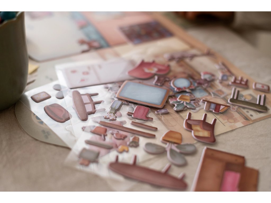 Podpořte dětskou fantazii s touto sadou opakovaně použitelných samolepek Little Dutch. Děti mohou znovu a znovu vyzdobit domeček Rosy více než šedesáti veselými 3D samolepkami a pokaždé vytvořit jiný příběh. Samolepky se snadno připevňují i odlepují, což umožňuje nekonečné hraní bez nepořádku. Ideální pro kreativní zábavu doma i na cestách. Vyrobeno z pevného papíru, který vydrží i časté používání. Vhodné pro děti od 3 let.Doplňkové parametry