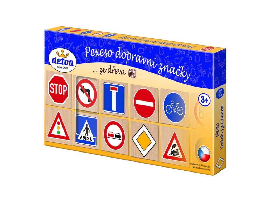 Pexeso dopravní značky, je populární dětská stolní hra. Děti se hravou formou naučí základní dopravní značky, které jsou jedny z předpokladů bezpečné orientace v dopravě. Hlavní vlastnosti: rozvíjí soustředění a paměť splňuje požadavky EU na bezpečnost hračekvhodná pro děti od 3 letSizing info