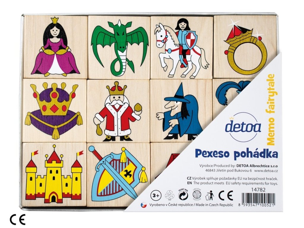 Pamatujete si na tu radost z dětství, kdy jste s napětím otáčeli kartičky a hledali ten vytoužený pár? S našim dřevěným pexesem Pohádka se tato kouzelná vzpomínka může stát realitou i pro Vaše děti! Sledujte, jak si Vaše ratolest rozvíjí paměť a soustředění hravou a zábavnou formou. Má krásné a barevné ilustrace pohádkových postaviček, které si Vaše děti ihned zamilují a vtáhnou je do světa fantazie. Kvalitní a odolné dřevěné provedení zaručuje dlouhou životnost a odolnost i při častém hraní. Hra rozvíjí paměť, soustředění a postřeh zábavnou a nenásilnou formou. Pexeso splňuje veškeré požadavky EU na bezpečnost hraček. Hlavní vlastnosti: obsahuje 24 dřevěných kamenůrozvíjí paměť, soustředění a postřehsplňuje požadavky EU na bezpečnostvhodný od 3 letSizing info