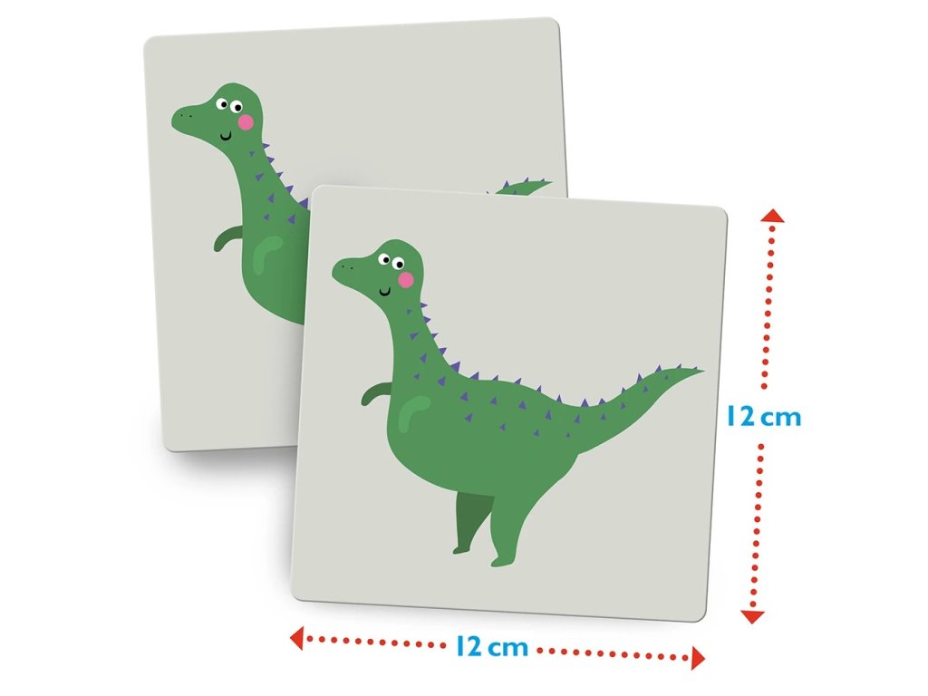 Tady je T-Rex, tam leží Stegosaurus... Kdepak se skrývá pterodaktyl? Pro tuto klasickou hru je nutná nejenom dobrá paměť, ale i trpělivost. Kdo najde mezi skrytými kartami nejvíce dvojic obrázků, vyhrává! Hlavní vlastnosti: rozvíjí logické myšlenítrénuje postřeh a paměť dětíSizing info