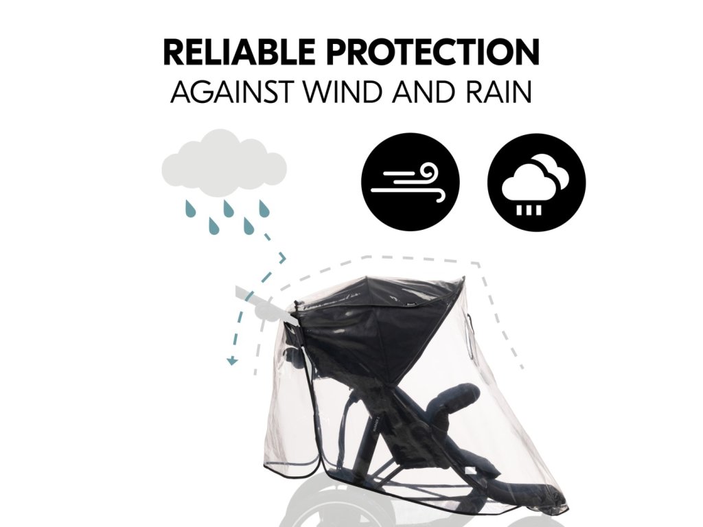SPOLEHLIVÁ OCHRANA PROTI VĚTRU A DEŠTI // Díky dotykovému zapínání zůstane pláštěnka spolehlivě na svém místě během celého výletu a vaše dítě bude vždy v suchu.
