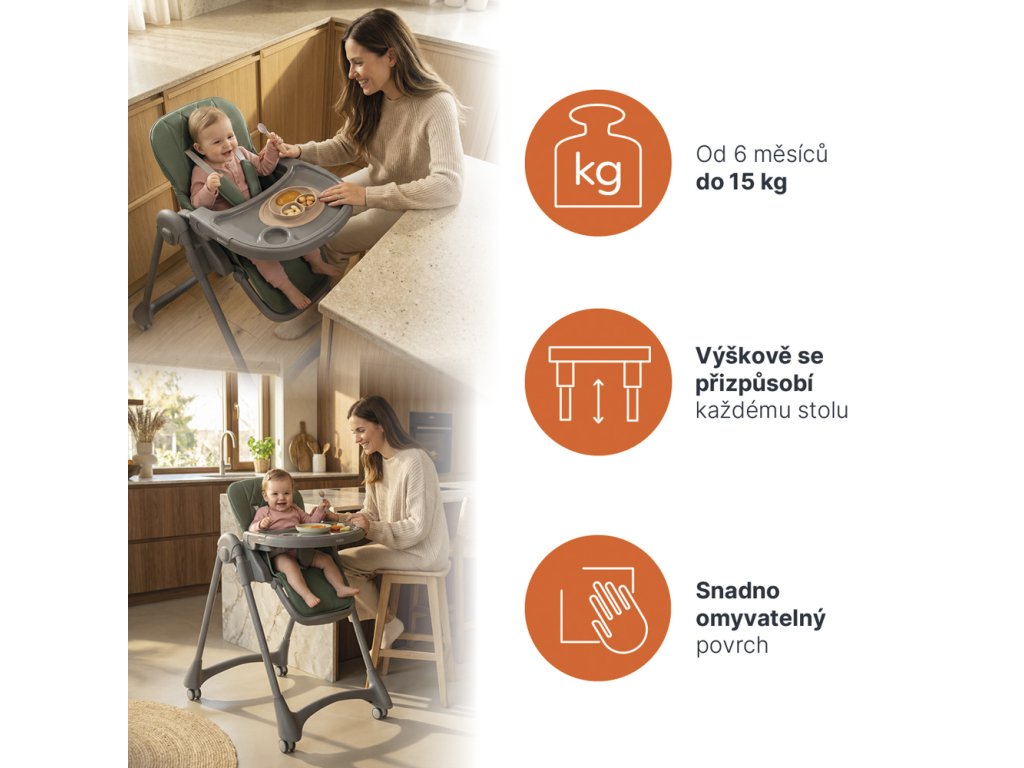polstrováním zajišťuje dítěti pohodlí při každém jídle. Stabilní konstrukce a