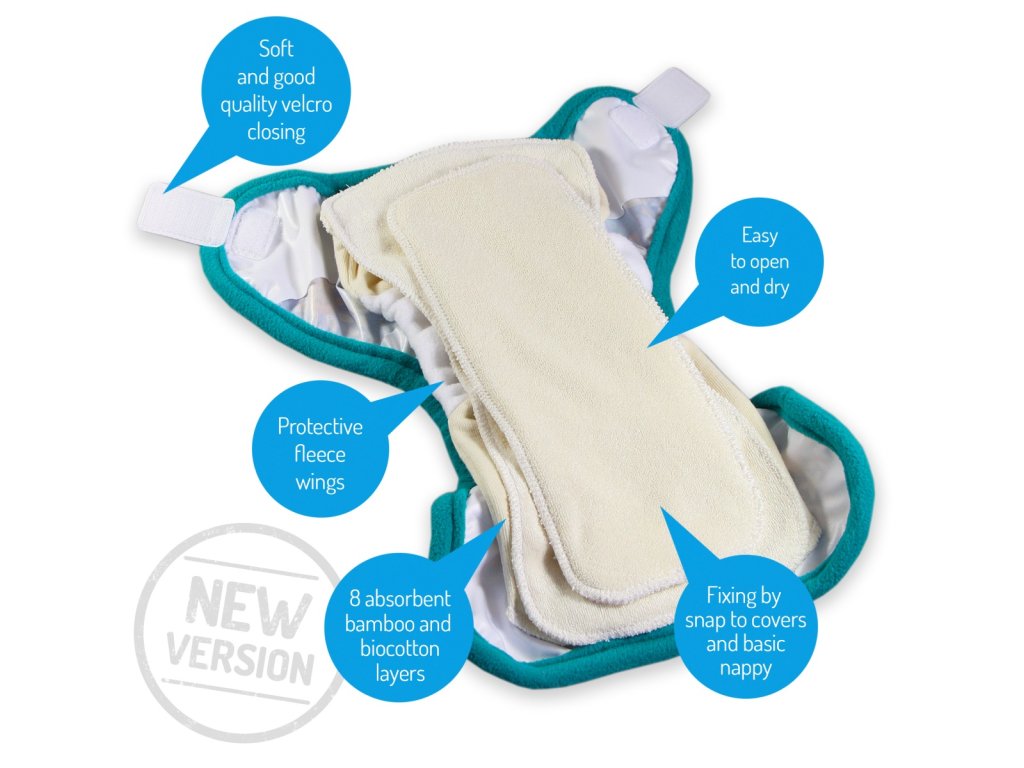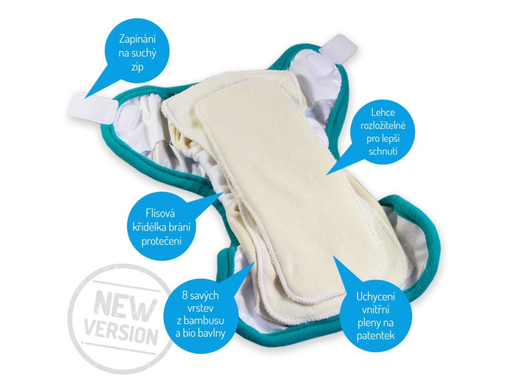 Původní cena za svrchní kalhotky (499 Kč) a SIO basic START (479 Kč) je 978 Kč, tento komplet nabízíme se slevou 239 Kč! Svrchní kalhotky jednovelikostní určeno pro děti od 5 kg do 16 kg váhy, dle proporcí dítěte pomocí patentek upravíte kalhotky přímo na míru, velikosti S, M, L vnější vzorovaná vrstva je z recyklovaného PUL, který šetří přírodu olemování flísem je citlivé k nožičkám a bříšku miminka, netlačí, neškrtí flís dobře izoluje, nic neprotéká, neprovlhá hravý vzor Složení: 100% recyklovaný polyester (laminovaný polyuretanem), flísový lem Vkládací plena SIO basic START SIO basic START je speciální vkládací plena, která se skládá z plenkové základny (SIO basic) a připínacího krátkého savého jádra (SIO) SIO basic START jednoduše nacvaknete do jednovelikostních svrchních kalhotek a získáte látkovou plenu vše v jednom. určeno pro děti od 4 kg do 15 kg váhy, dle proporcí dítěte od narození cca do 6 měsíců dítěte vystačíte pouze s podehnutou plenkovou základnou (SIO basic) až nebude savostí základna stačit, připnete savé jádro krátké (SIO), které je již součástí SIO basic START vysoká savost Složení: SIO basic (základna) 60% viskóza (bambus), 40% bavlna (bio) START – Savé jádro krátké (SIO) líc a rub: 60% viskóza (bambus), 40% bavlna (bio) výplň: 80% bavlna, 20% polyester Více o péči zde.Doplňkové parametry