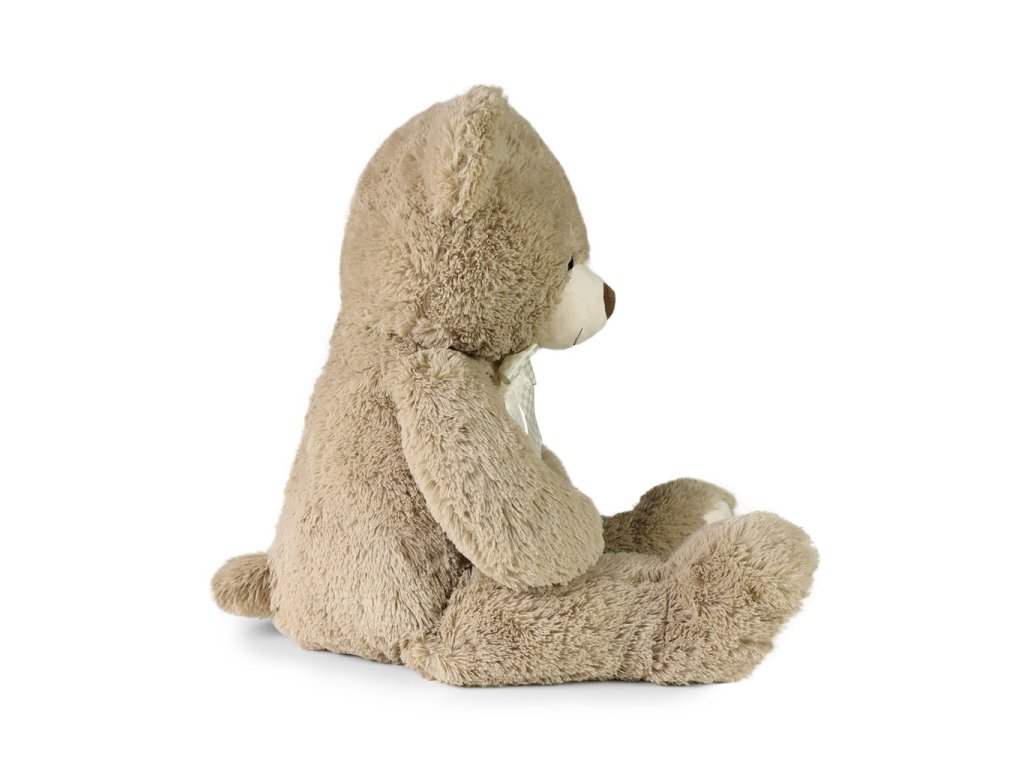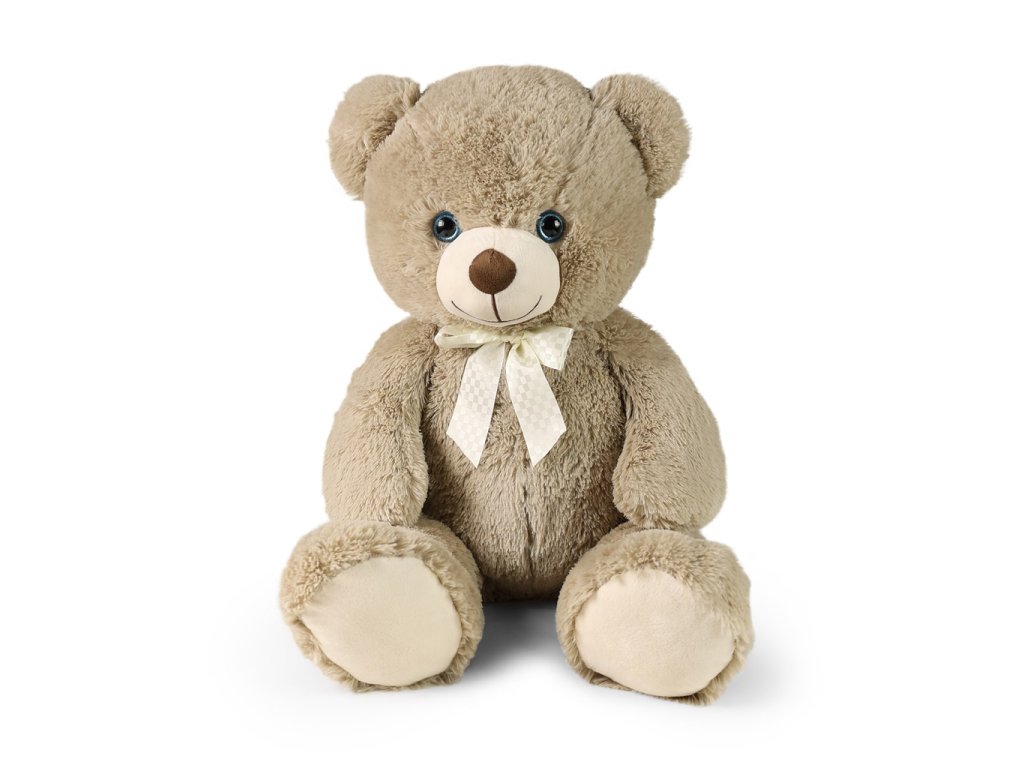 Plyšový medvěd by rozhodně neměl chybět v žádném dětském pokojíčku! Medvěd ve velikosti 78 cm je vyroben z kvalitního heboučkého plyše v barvě kapučína a krk mu zdobí krémově bílá saténová mašle. Součástí je papírová visačka ve tvaru srdíčka, na kterou můžete napsat věnování. Tento plyšový kousek je ideálním dárkem pro malé i velké! Hlavní vlastnosti: roztomilý mazlíčekruční zpracovánís visačkou ve tvaru srdíčkaSizing info
