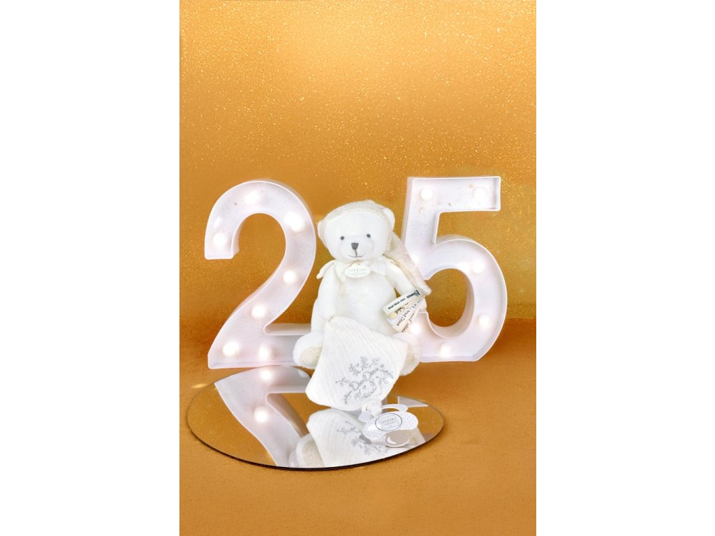 Tento plyšový medvídek je mnohem víc, než jen plyšová hračka. Kombinuje funkčnost a eleganci zároveň. Na tlapce má přišitou měkkou dečku, která je ideální k mazlení a může pomoci miminku lépe usínat. Na konci dečky se navíc nachází praktický úchyt na dudlík, takže bude vždy po ruce. Medvídek má na hlavě béžovou čepičku a pod krkem roztomilý bílý límeček a hebké tlapky s béžovými detaily, které mu dodávají něžný a přátelský vzhled. Jemné výšivky a ozdobné štítky přidávají na osobitosti a něžnosti, díky čemuž se stane věrným společníkem od prvních okamžiků Vašeho miminka. Díky jemným, trendovým barvám a kvalitním, hebkým materiálům je ideální pro malé děti, kterým přináší pocit bezpečí a pohodlí. Skvělý tip na dárek, který stimuluje smysly, rozvíjí jemnou motoriku a přináší dětem pocit bezpečí. Údržba: Perte v lázni na 30°. Přirozené nebo nízkoteplotní sušení. Hlavní vlastnosti: měkký plyš, prémiový materiálvhodné od narozenív souladu s evropskými normami CEideální jako dárek dárková krabičkanarozeninová kolekceSizing info