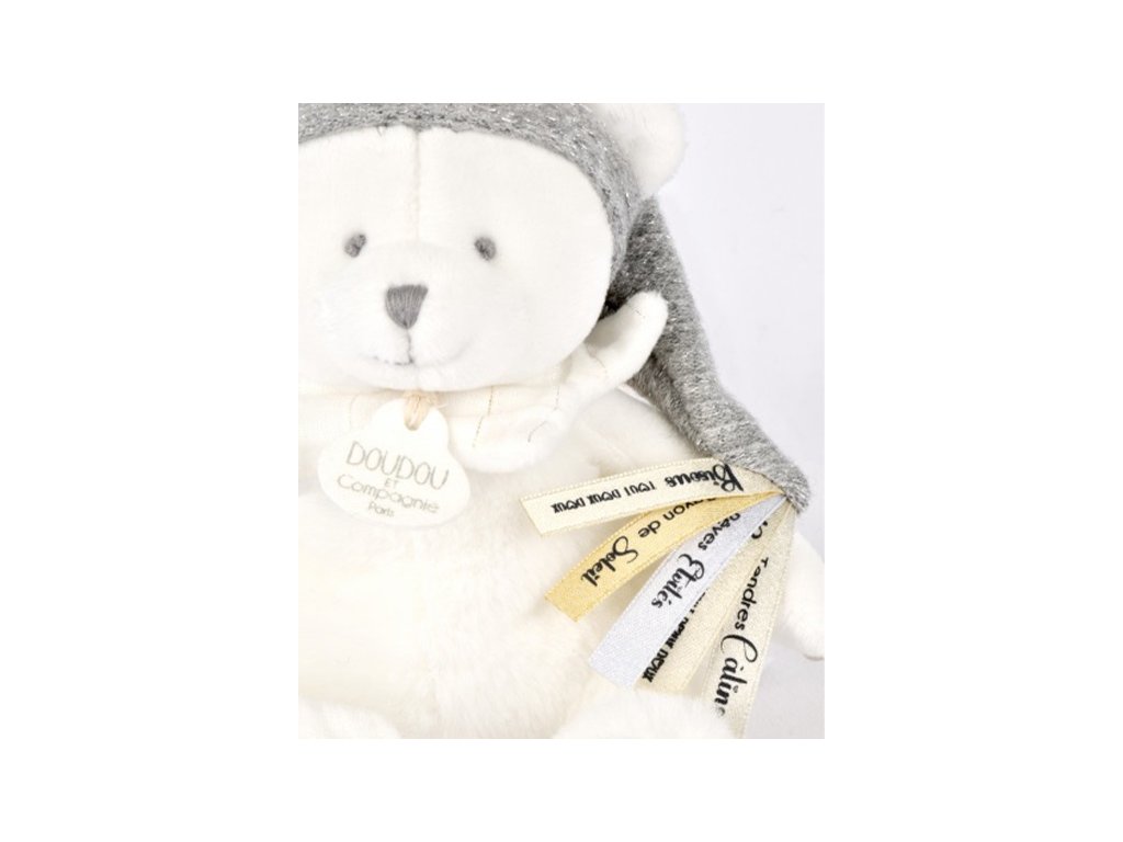 Tento plyšový medvídek je mnohem víc, než jen plyšová hračka. Kombinuje funkčnost a eleganci zároveň. Na tlapce má přišitou měkkou dečku, která je ideální k mazlení a může pomoci miminku lépe usínat. Na konci dečky se navíc nachází praktický úchyt na dudlík, takže bude vždy po ruce. Medvídek má na hlavě šedou čepičku a pod krkem roztomilý bílý límeček a hebké tlapky s šedými detaily, které mu dodávají něžný a přátelský vzhled. Jemné výšivky a ozdobné štítky přidávají na osobitosti a něžnosti, díky čemuž se stane věrným společníkem od prvních okamžiků Vašeho miminka. Díky jemným, trendovým barvám a kvalitním, hebkým materiálům je ideální pro malé děti, kterým přináší pocit bezpečí a pohodlí. Skvělý tip na dárek, který stimuluje smysly, rozvíjí jemnou motoriku a přináší dětem pocit bezpečí. Údržba: Perte v lázni na 30°. Přirozené nebo nízkoteplotní sušení. Hlavní vlastnosti: měkký plyš, prémiový materiálvhodné od narozenív souladu s evropskými normami CEideální jako dárek dárková krabičkanarozeninová kolekceSizing info