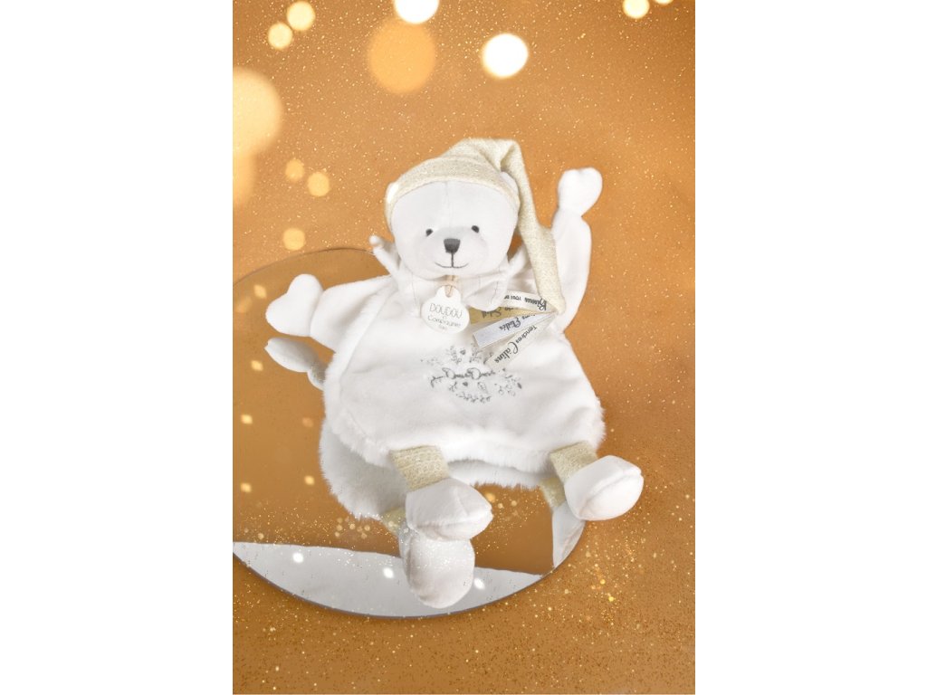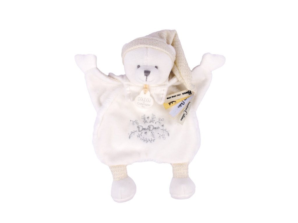 Plyšový muchláček medvídek je ideálním dárkem pro děti již od narození. Medvídek má na hlavě roztomilou béžovou čepičku a měkké bílé tlapky, které vypadají, jako by měl na nožkách malinké bačkůrky. Pod krkem má bílý límeček a na bříšku najdete jemnou šedou výšivku značky Doudou, která podtrhuje jeho něžný vzhled. Díky jemným, trendovým barvám a kvalitním, hebkým materiálům je ideální pro malé děti, kterým přináší pocit bezpečí a pohodlí. Perfektní tip na dárek, který potěší a zároveň stimuluje smysly Vašeho miminka. Údržba: Perte v lázni na 30°. Přirozené nebo nízkoteplotní sušení. Hlavní vlastnosti: měkký plyš, prémiový materiálvhodné od narozenív souladu s evropskými normami CEideální jako dárekSizing info
