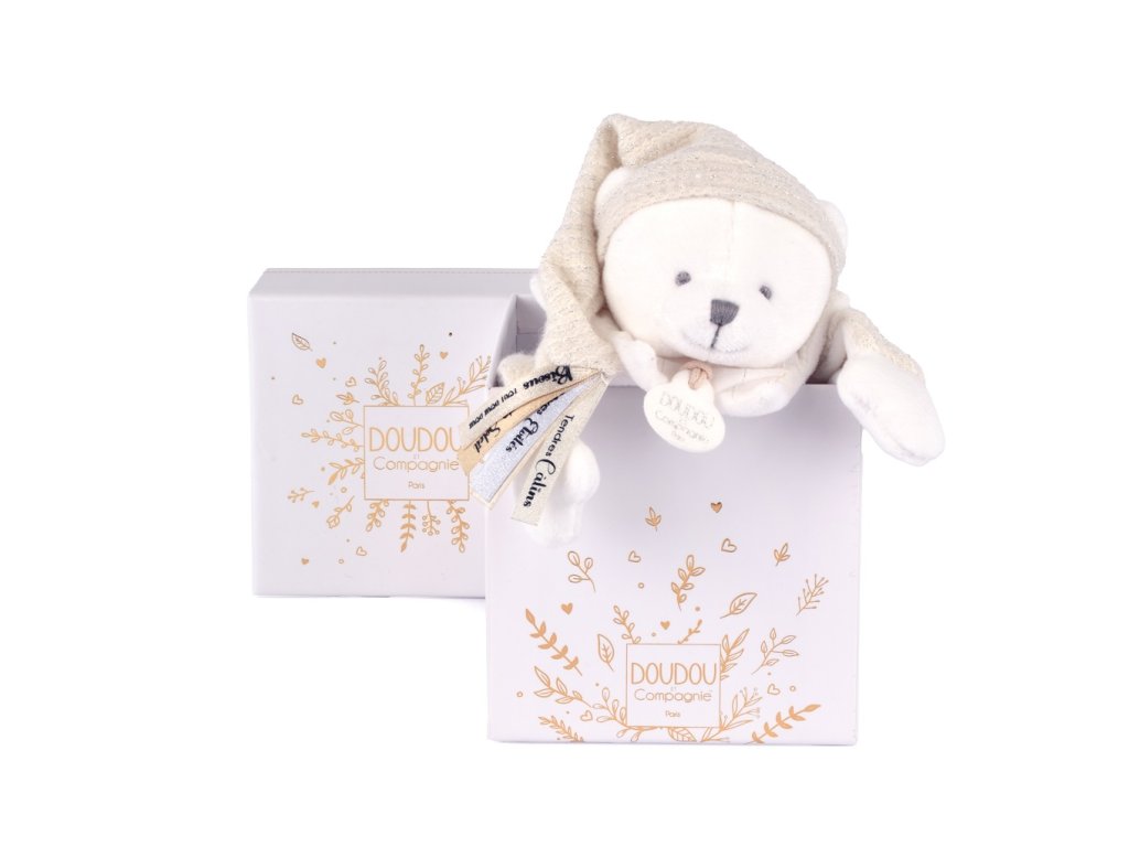 Doudou Dárková sada Plyšový muchláček medvídek s čepičkou béžový 25 cm