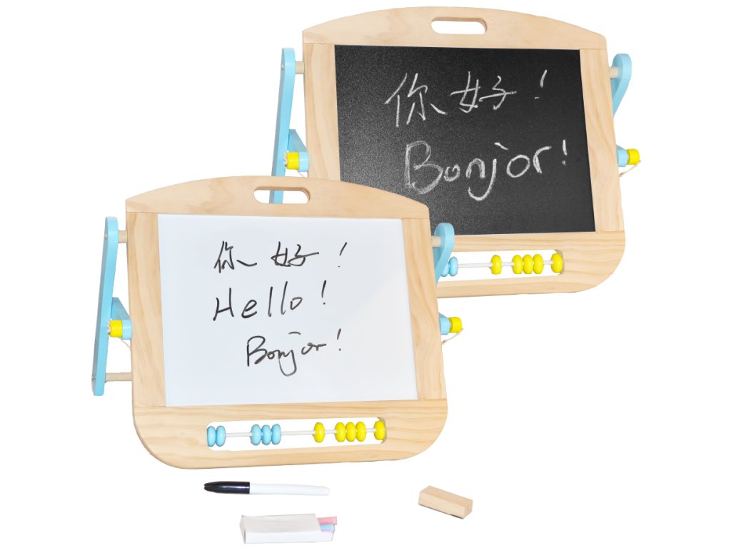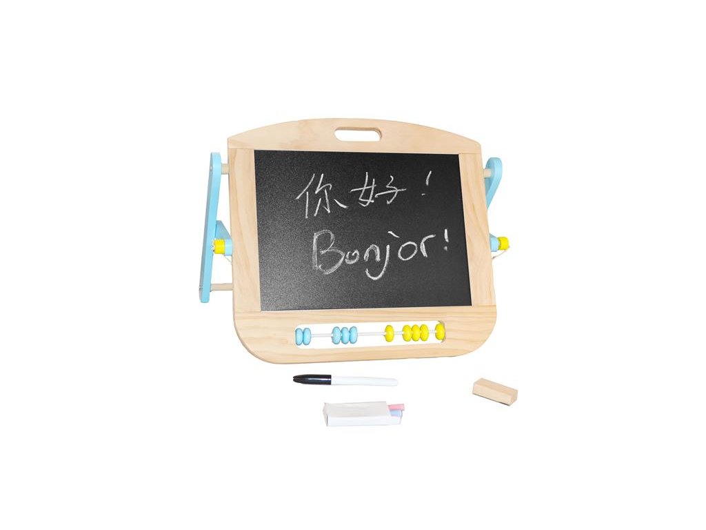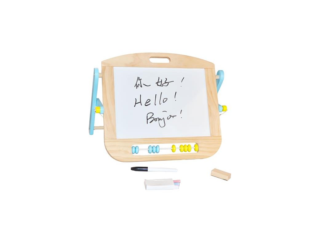 S touto stolní oboustrannou tabulí lze snadno rozvíjet kreativní umělecké dovednosti dětí. Z jedné strany magnetická tabule se suchým stíráním fixů, z druhé strany tradiční tabule pro křídu. Fix, křídy a plstěná houba je součástí balení. Tato tabule má také malé dvoubarevné počítadlo pro rané učení počítání. Tato dřevěná, dvoustranná, multifunkční nástěnka se jistě stane nepostradatelným společníkem Vašeho dítěte. Hlavní vlastnosti: oboustranná tabulevčetně příslušenstvísoučástí také počítadlo s deseti kulačkamivyrobeno ze dřeva s certifikací FSCvyhovuje současným evropským bezpečnostním normámpraktická pomůcka k učení Značka a certifikát FSC® (Forest Stewardship Council) zaručuje, že dřevo, ze kterého byl produkt vyroben, nebylo vytěženo nelegálně a pochází z lesů obhospodařovaných šetrným či přírodě blízkým způsobem, ve kterém jsou dodržovány přísné environmentální a sociální požadavky. Značka FSC® na výrobku znamená, že svým nákupem pomáháte chránit lesy a podporujete šetrné, odpovědné či přírodě blízké hospodaření, díky kterému jsou naše lesy stabilnější, zdravější, mají přirozenou druhovou skladbu a lépe odolávají negativním následkům klimatických změn.Sizing info