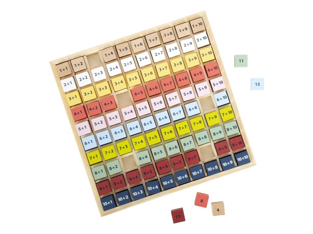 Barevná zábava s čísly podpoří děti v procvičování sčítání do 20. Na každé kostce je matematický problém s odpovídající odpovědí na druhé straně, takže děti mohou ovládat svůj přístup k řešení zcela samy. Umísťováním kostek do jejich slotů si dítě trénuje jemnou motoriku rukou. Pomůcka je vyrobená z robustního 100% FSC® certifikovaného, odolného dřeva. Svou velikostí a provedením je výborná na cestování. Skvěle hodí k dalším výukovým hrám z produktové řady „Educate“. Hlavní vlastnosti: barevné kostky100% FSC® dřevotrénuje jemnou motoriku rukouvhodná na cestování, nebo k zápisu do školySizing info