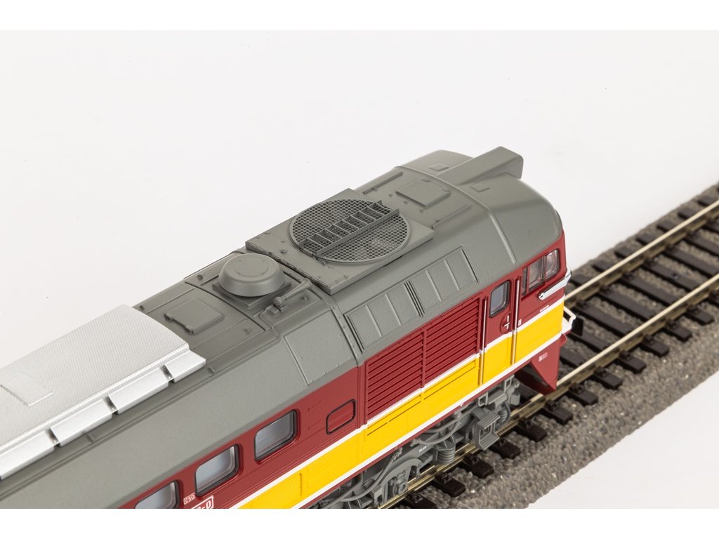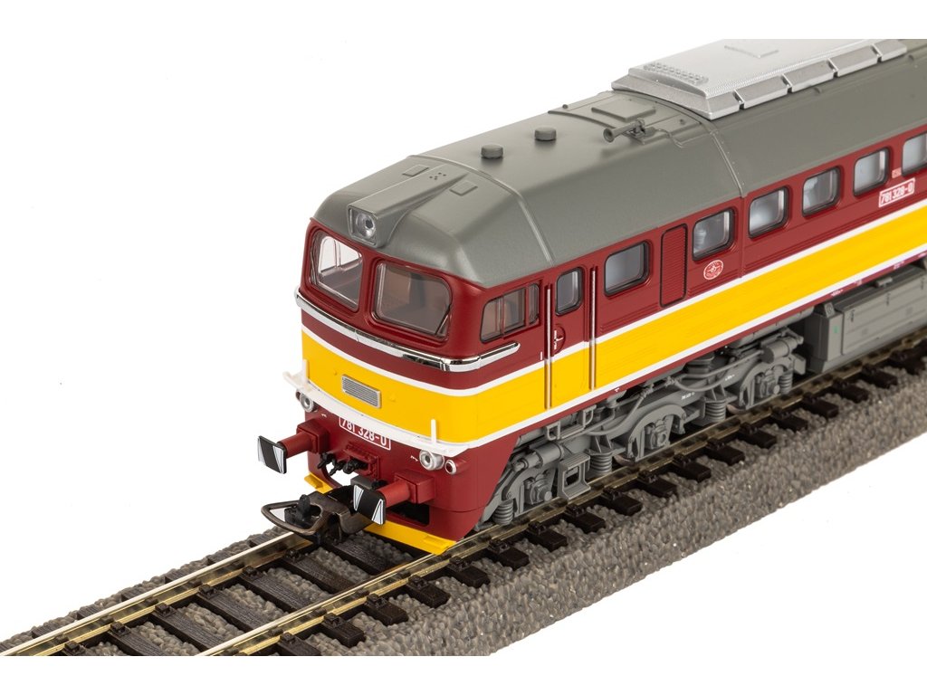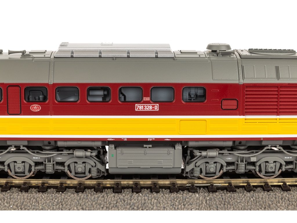 Představujeme Vám novinku roku 2024, model dieselové lokomotivy BR 781 Českých drah. Model má pevný tlakově odlévaný rám, silný motor a dále je vybaven digitálně ovládaným osvětlením kabiny strojvedoucího. K vybavení také patří speciálně připevněné kliky a madla dveří a detailně zpracovaný podvozek. Vestavěný reproduktor je přesně přizpůsoben typu lokomotivy. Model je připraven pro dodatečnou instalaci zvuku. Díky rozhraní PluX22 je instalace dekodéru velmi rychlá a jednoduchá. Tato lokomotiva byla vyvinuta a vyráběna v Sovětském svazu v letech 1966 – 1979 a byla jednou z nejpočetnějších lokomotiv v Československu. Díky sovětskému původu lokomotivy a robustnímu vzhledu se jí přezdívalo Sergej. Lokomotiva má výkon 1 470 kW, je vybavena dvanáctiválcovým motorem a její maximální rychlost je 100 km/h Lokomotiva byla známá svou hlučností a nebyla tedy oblíbená mezi obyvateli oblastí, kde byla nasazena. Specifikace: délka s nárazníky - 202 mmspojka - hřídel NEM + krátké zadní spřáhlominimální rádius - 358 mmnapájení - DCanalogové ovládání počet trakčních pneumatik - 2příprava pro digitální rozhraní – NEM 658 PluX22 osvětlení – ano - bílá/červená - svítí v závislosti na směru jízdyvnitřní osvětlení – ano - digitálně přepínatelné osvětlení kabiny strojvedoucího (s dekodérem PluX22) zvuk – ne – možnost dodatečné instalace PIKO zvukový dekodér – číslo zboží 56539 Hlavní vlastnosti: novinka roku 2024přepínatelné vnitřní osvětlení kabiny strojvedoucíhokliky a madla dveří a detailně propracovaný podvozekatraktivní designSizing info