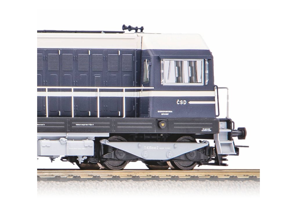 Ukázka zvuku zabudovaného digitálního dekodéru. Model čtyřnápravové diesel‑elektrické lokomotivy T 435 „Hektor“ Československých státních drah, nejčastěji sloužící k posunování a pohonu lehkých nákladních souprav. Pro vysokou spolehlivost a jednoduchou obsluhu jsou tyto stroje dodnes provozovány soukromými společnostmi na vlečkách průmyslových podniků a při údržbě tratí. Díky pozornosti věnované detailům můžete obdivovat rozdílné podvozky odlišující starší a novější série lokomotivy, a to samozřejmě včetně uspořádání soustavy brzd. Precizně zpracovaná karoserie neopomíná ani nejjemnější prolisy ve dvířcích údržby, které oživují její spartánský charakter. Dojem autenticity umocňuje prvotřídní lakování pečlivě vybranými odstíny a potisk nejvyšší kvality. Dokonale čirými okénky je možno nahlížet do náležitě upraveného interiéru kabiny. Stroj zdobí řada dodatečně připojených prvků, mezi nimiž se vyjímá zejména zábradlí, ale patří k nim také podrobně zhotovený systém chlazení a elektrické vedení na střeše. Pro účely vystavení ve vitríně lze model navíc doplnit detaily táhlového ústrojí, které jsou součástí balení. Výkonný motor je vybaven rozměrnými setrvačníky a moment je přenášen prostřednictvím dvojice úhlopříčně uspořádaných bandážovaných kol na vnitřních nápravách, poháněná jsou však všechna dvojkolí. V součinnosti s těžkým, precizně navrženým a sestaveným zinkovým podvozkem je tak výsledkem vysoká tažná síla a bezvadně plynulý chod. Trojice světel na čelech se rozsvěcí a mění barvu v závislosti na směru jízdy. Osvětlením je vybavena jak kabina strojvedoucího, pak také poutavý detail v podobě provozního čísla stroje. Lokomotiva je vybavena digitálním dekodérem se zvukovým modulem a reproduktorem, který obsahuje knihovnu zvuků věrných předloze a umožňuje pokročilé ovládání světel. Je kompatibilní s protokoly DCC, Rail‑Com® a Motorola®, a umožňuje i provoz v analogovém režimu. Příslušný provozní režim umí sám chytře rozeznat. S ovládacími jednotkami PIKO SmartControl, nebo i jednotkami kompatibilními s formátem mfx®, nabízí široké možnosti individuálního mapování. Hlavní vlastnosti:vestavěn digitální dekodér se zvukovým modulem a reproduktoremčtveřice nápravmotor s dvojicí setrvačníkůdvojice bandážovaných hnacích kolsvětla s přepínáním barvy dle směru jízdyosvětlení interiérurozhraní PluX22 dle NEM 658šachta dle NEM 362 s kinematikou krátkého spřáhla Dokumentace:brožura k BR 107/T 435 (DE)obecné informace k BR 107/T 435 (DE, EN, F, NL)návod k obsluze a seznam náhradních dílů modelu č. 52428 (DE, EN, F, CZ)Sizing info