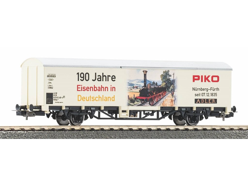Novinkou roku 2025 je krytý nákladní vagón v měřítku H0 (1:87), je vydaný jako limitovaná jubilejní edice k 190. výročí železnice v Německu. Tento model připomíná zahájení železniční dopravy na trati Nürnberg–Fürth v roce 1835 a historickou parní lokomotivu Adler, která je symbolem počátků železnice. Vůz je určen především jako tematický a sběratelský model, nikoli jako přesná replika konkrétního historického prototypu provozovaného železniční společností. Vůz je proveden jako dvounápravový krytý nákladní vůz, bez motoru, bez osvětlení a bez digitální výbavy. Je určen pro dvoukolejný stejnosměrný systém (DC) a je vybaven standardní NEM šachtou s kinematikou krátkého spřáhla, což zajišťuje plnou kompatibilitu s ostatními vozy a lokomotivami v měřítku H0. Barevné provedení vozu je světle krémové, doplněné černými a červenými nápisy a výraznou barevnou grafikou historické lokomotivy Adler na bočnici. Díky světlé barvě a tematickému potisku se vůz výrazně odlišuje od běžných nákladních vozů a slouží jako vizuálně atraktivní prvek každé soupravy. Specifikace: měřítko H0 (1:87)epocha VI DC napájenídélka s nárazníky 160 mmminimální rádius 358 mmšachta NEM + krátké spřáhlo Hlavní vlastnosti: novinka pro rok 2025speciální edice k výročí 190 let železnic v Německuexkluzivní design s historickým motivem klasické parní lokomotivy „Adler“unikátní limitovaná edicevhodné do nákladních souprav H0detailní zpracováníatraktivní designSizing info