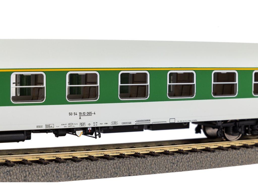 Osobní vagón 1. třídy Českých drah patří do modelové řady Y. Nové modely vagónů řady Y se vyznačují přesným prototypovým provedením. Model je vytvořen podle skutečných vagónů provozovaných Českými drahami, což poskytuje autentičnost při sestavení konkrétního železničního provozu. Tento osobní vagón 1. třídy je vynikající doplněk pro modelové železnice, má realistický vzhled a je zpracován s důrazem na detaily, jako jsou ostré a velmi výrazné rytiny v oblasti dveří, propracované podvozky a podlaha vozu s jednotkami. Je možné jej vylepšit dodatečnou instalací vnitřního osvětlení, což bude efektní zvláště při nočním provozu. Specifikace: délka s nárazníky - 282 mmminimální rádius - 358 mmspojka - hřídel NEM s krátkým spřáhlemnapájení DC Hlavní vlastnosti: realistické a detailní zpracovánímožnost dovybavit modulem vnitřního osvětlení – 56270AC náhradní dvojkolí - 56060Sizing info