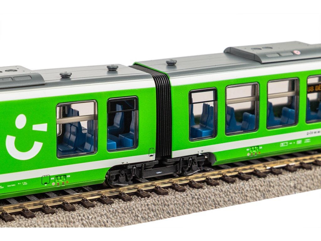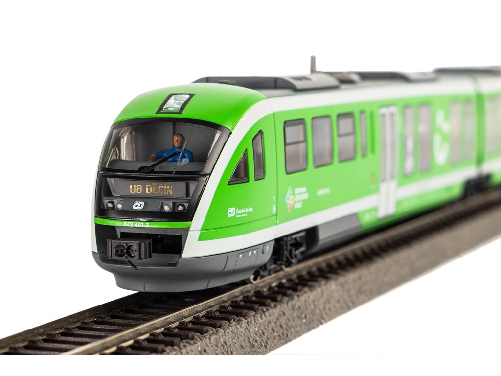 Novinka roku 2025 v atraktivním barevném provedení s označením společnosti ČD je precizně vyrobený model propracovaný do nejmenších detailů. Jedná se o designovou variantu dieselové jednotky Siemens Desiro ČD BR 642. Díky vhodnému rozhraní NEM 652 lze jednoduše digitálně dovybavit. Specifikace: napájení - DCanalogové ovládání délka s nárazníky - 479 mmspojka NEM + krátké spřáhlominimální rádius - 358 mmdigitální rozhraní - NEM 652venkovní osvětlení - ano - bílá/červená svítí v závislosti na směru jízdypřepínatelné vnitřní osvětlení z výrobyzvuk - ne - možno dovybavit zvukovým dekodérem PIKO (56581)speciální spřáhlo pro vícečlenné řazení je součástí balení Hlavní vlastnosti: novinka roku 2025realistické barevné provedenídetailní zpracováníatraktivní designSizing info