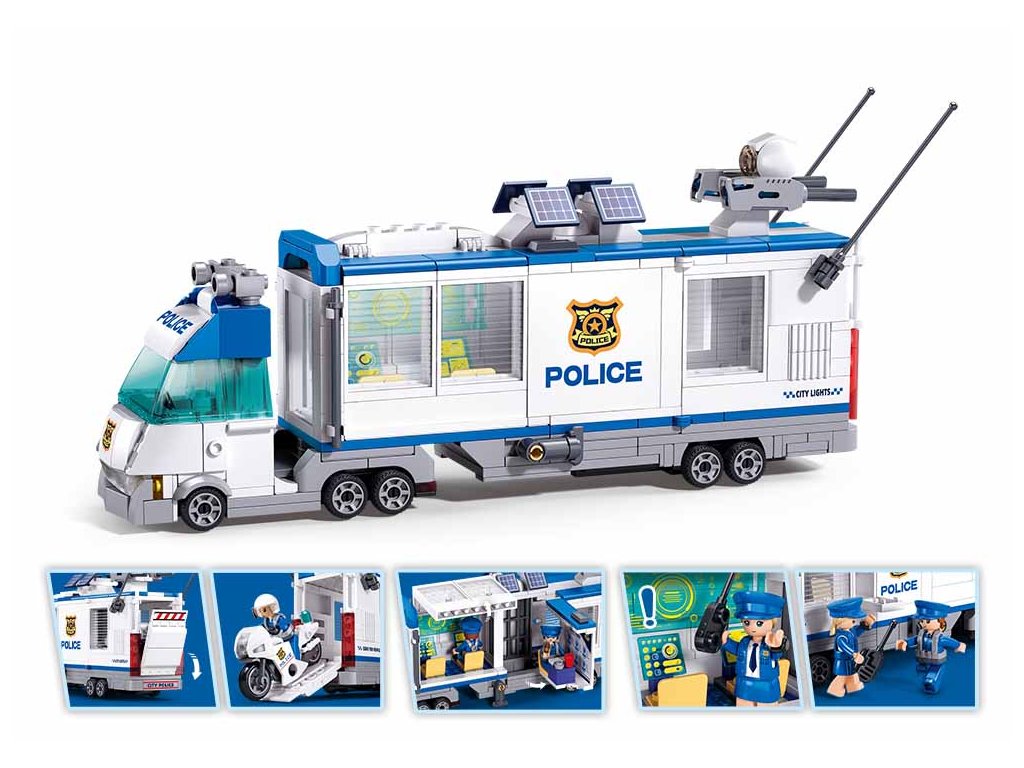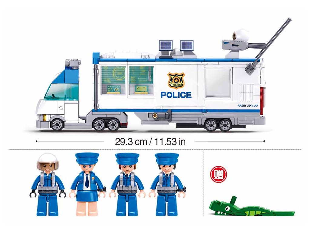 Policejní kamion je připraven vyjet do terénu a veze s sebou vše potřebné včetně policejního motocyklu a čtyřkolky. Zločinci nemají žádnou šanci! Inovativní stavebnice Sluban je možno kombinovat s podobnými stavebnicemi mnoha dalších významných výrobců. Jsou vyráběny z kvalitního, nezávadného a odolného ABS plastu. Každá stavebnice je opatřena návodem k sestavení a balena v pestře potištěné papírové krabičce. Hlavní vlastnosti: 510 dílků, 4 figurkyinovativní figurky s otáčivými i výkyvnými částmi tělkompatibilní se stavebnicemi dalších výrobcůSizing info