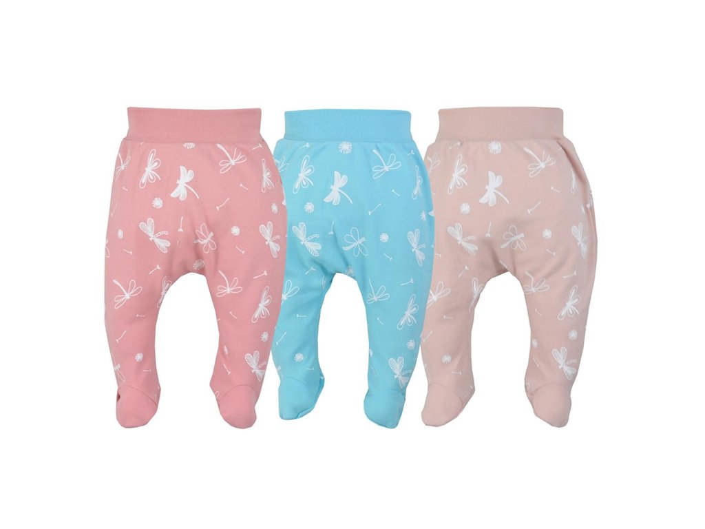 Kojenecké polodupačky Koala Vážka. Barevné polodupačky jsou celopotištěné obrázky, na kterých jsou vážky. Polodupačky jsou vhodné pro miminka už od narození pro svou jemnost a měkkost. V pase mají široký lem, který netlačí na bříško miminka. Složení: 100% bavlna.