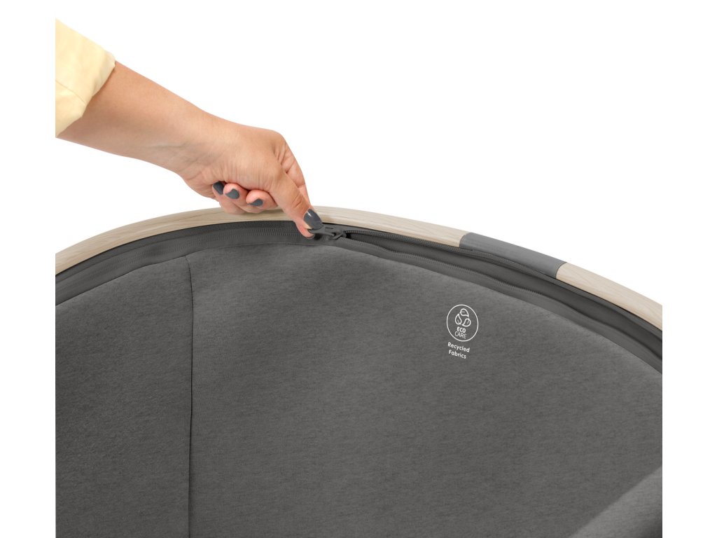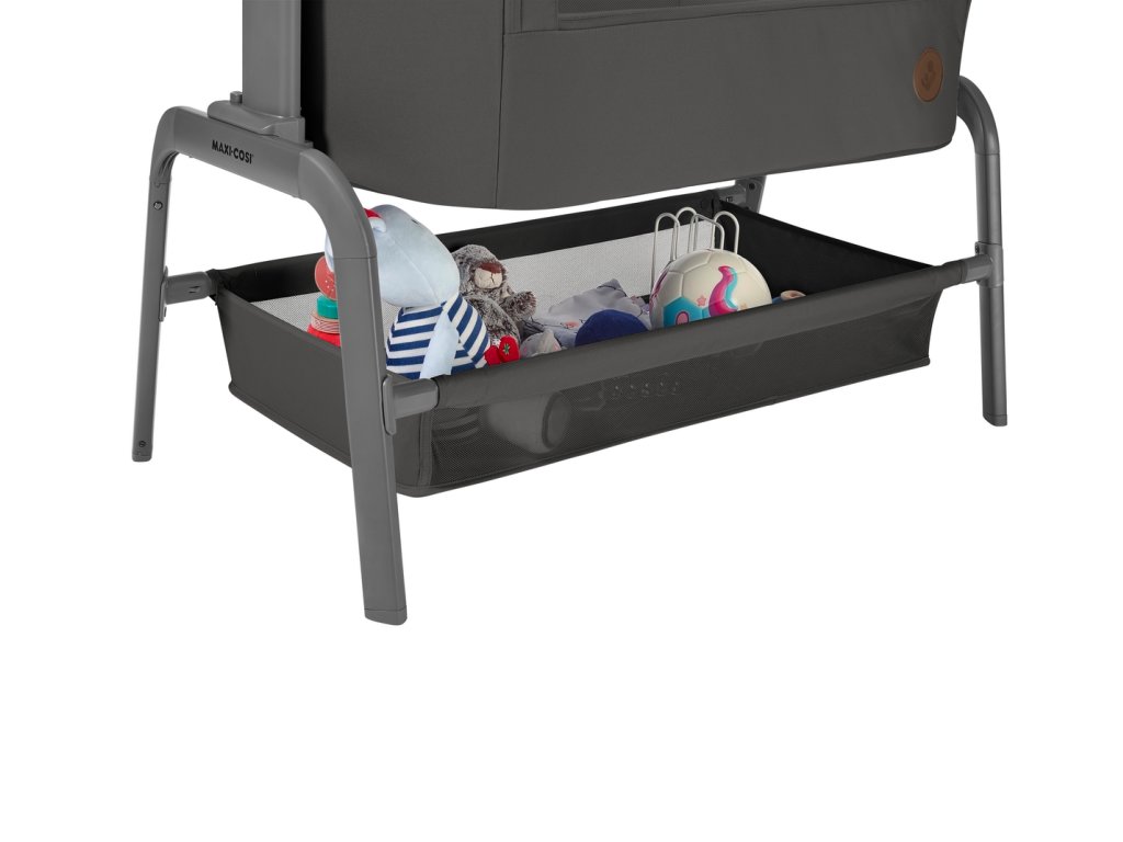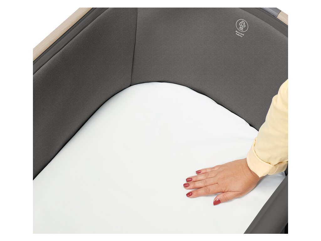 Postýlka Maxi-Cosi Iora je ideální pro všechny rodiče, kteří chtějí mít své miminko nablízku i během spánku. Postýlka nabízí 5 výškových poloh a možnost úpravy bočnice, abyste miminko mohli mít na dosah ruky vedle své postele. Funkce Easy Slide umožňuje dokonalé přisunutí postýlky k vaší posteli. Pokud vaše miminko trápí reflux, můžete využít možnost matraci umístit do lehce šikmé polohy s vyvýšenou horní částí. Postýlka je vybavena kvalitní pěnovou matrací. Boční síťované okno zajišťuje větrání postýlky. Prostorný úložný koš pod postýlkou můžete využít pro uložení všeho nezbytného pro přebalování a celkovou péči o miminko. Postýlku je možné složit do praktické cestovní tašky a využít ji i na cestách. Textilní části postýlky jsou s ohledem na udržitelnost životního prostředí vyrobeny ze 100% recyklovaných materiálů. Snadno snímatelný potah postýlky i úložný koš je možné prát v pračce. Vhodné pro děti od narození do 9 kg (cca do 6 měsíců). Hmotnost: 10,8 kg Rozměry: D 93 x Š 55 V 74,5 - 85,5 cm Matrace: 80 x 58,5 x 3 cm Upozornění: Postýlka je vhodné pouze do doby, než se dítě začne zvedat na kolena a ruce.Doplňkové parametry