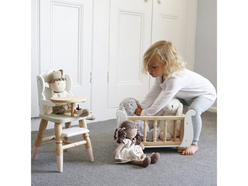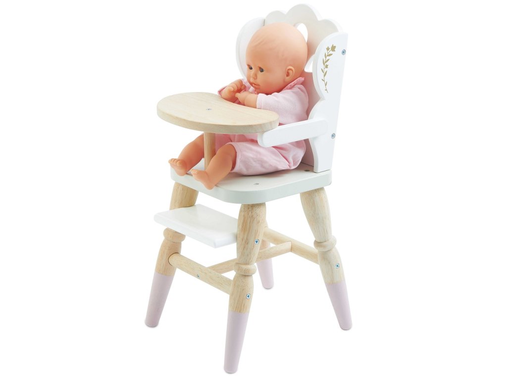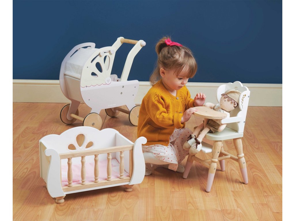 Krásná dřevěná židlička je perfektní pro hru na role! Vhodná pro plyšáky a panenky ve velikosti asi 35 cm, mladé maminky a tatínky inspiruje k představivé hře.Je vyrobena z odolného a udržitelného kaučukového dřeva, nenajdete zde žádný plast, opravdová eko zábava!Židlička má mnoho detailů, ozdobné nohy, designové výřezy v opěrce, zlaté květinové zdobení. Mezi její praktické vybavení patří opěrka na nohy a podnos. Opravdu realistická jídelní židle pro hladové hračky. K židličce se krásně hodí postýlka Sleigh a kočárek Sweet Dreams, které najdete v záložce „příslušenství“. Hračky s účelemVšechny hračky firmy Le Toy Van jsou vyrobeny s cílem – aby dlouho vydržely. Designovány s láskou zkušenými řemeslníky za použití etických praktik a udržitelných materiálů, které jsou laskavější k naší planetě. Hlavní vlastnosti: židlička pro panenkyvhodné pro hračky ve velikosti 30-35 cmvyrobeno eticky z udržitelného dřevaneobsahuje plasttestováno dle nejpřísnějších standardůmalováno netoxickými barvami na bázi vodyinspiruje k představivé hřeasistuje v rozvoji sociálních dovedností a řečipo rozbalení nutno složit dle návodu Ocenění hračky:Good Toy Guide Recommended Honeybake kolekce: Hračky v této kolekci jsou vhodné k objevování, pomohou dětem s rozvojem představivosti, sociálních a verbálních dovedností a kognitivních funkcí. Tradiční design s moderními detaily děti jistě bude bavit. Honeybake je kolekce Le Toy Van, která vyhrála nejvíce ocenění, a to za design, kvalitu, bezpečnost a také za vzdělávací a herní hodnotu.Sizing info