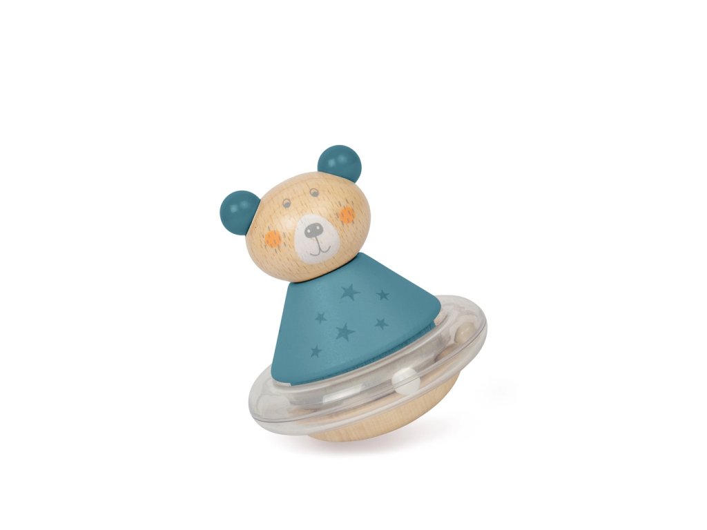 Rozhoupejte medvídka a sledujte, jak se kolébá ze strany na stranu, a naslouchejte jemnému chrastění barevných korálků. Vaše miminko bude se zájmem sledovat uklidňující kolébavý pohyb usměvavého medvídka a příjemný chrastivý zvuk. Tato smyslová hračka je vhodná pro děti už od narození, rozvíjí jemné motorické dovednosti a koordinaci pohybů. Houpavý pohyb a chrastivý zvuk podporuje smyslový vývoj dětí a ukazuje, jak funguje příčina a následek. Panáček vstáváček Medvídek je součástí řady cenově dostupných hraček, které nejsou příliš drahé, ale jsou zábavné i naučné. Je vyroben z vysoce kvalitního a udržitelného dřeva s certifikací FSC® a nabarven netoxickými barvami a laky. Splňuje všechny současné evropské bezpečnostní normy. Hlavní vlastnosti: vyrobeno ze dřeva s certifikací FSC® rozvíjí jemnou motoriku a koordinaci pohybůpodporuje smyslový vývoj dětíuklidňující kolébání a jemný chrastivý zvukvhodné od narození Značka a certifikát FSC® (Forest Stewardship Council) zaručuje, že dřevo, ze kterého byl produkt vyroben, nebylo vytěženo nelegálně a pochází z lesů obhospodařovaných šetrným či přírodě blízkým způsobem, ve kterém jsou dodržovány přísné environmentální a sociální požadavky. Značka FSC® na výrobku znamená, že svým nákupem pomáháte chránit lesy a podporujete šetrné, odpovědné či přírodě blízké hospodaření, díky kterému jsou naše lesy stabilnější, zdravější, mají přirozenou druhovou skladbu a lépe odolávají negativním následkům klimatických změn.Sizing info