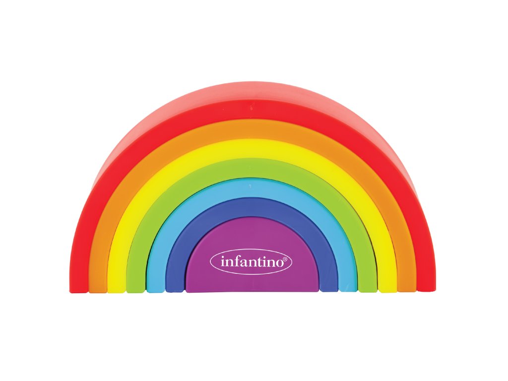 Pestrobarevná 7-dílná skládačka v podobě duhy poskytne vašemu dítěti skvělou zábavu a variabilní hru. Hračka zároveň pomáhá rozvíjet jednotlivé smysly, jemnou motoriku, koncentraci i logické myšlení dítěte. Vyrobeno z příjemného, kvalitního plastu. Rozměry složené duhy: 15 x 8 x 5,5 cm Maximální výška věže: 28,5 cm Vhodné pro děti od 12 měsíců.Doplňkové parametry