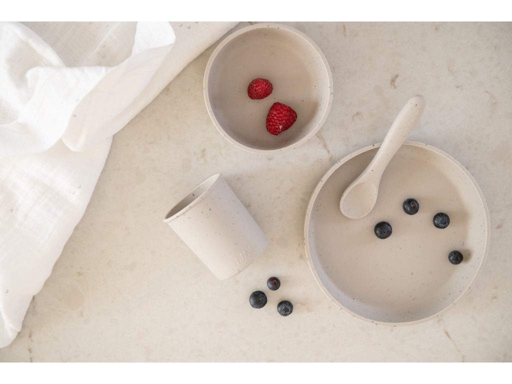 KIKKABOO Jídelní sada 5-dílná Platinum Silicone Sand