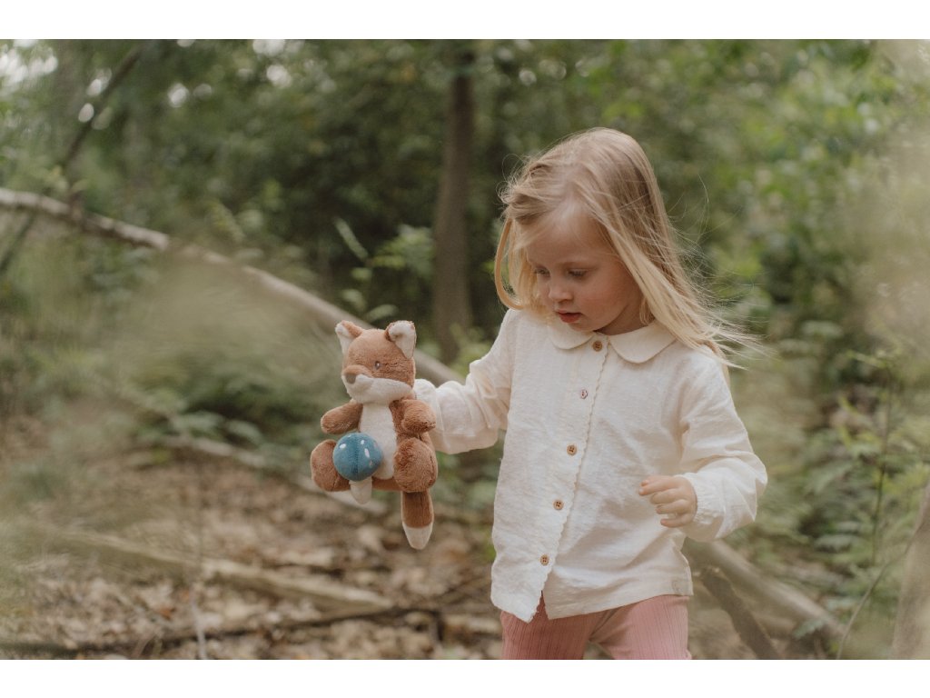 Jemná plyšová hračka v podobě veselé lišky s houbičkou je ideální jako mazlík do postýlky pro lepší usínání vašeho dítěte. Liška umí sedět a může se tak stát i krásnou dekorací v dětském pokojit. Hračka je součástí designové kolekce hraček a doplňků Little Dutch Forest Friends inspirované životem v lese. Rozměry: 20 x 15 x 10 cm Vhodné pro děti od narození.Doplňkové parametry