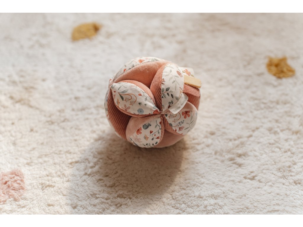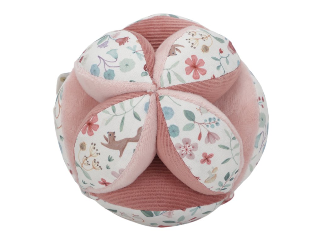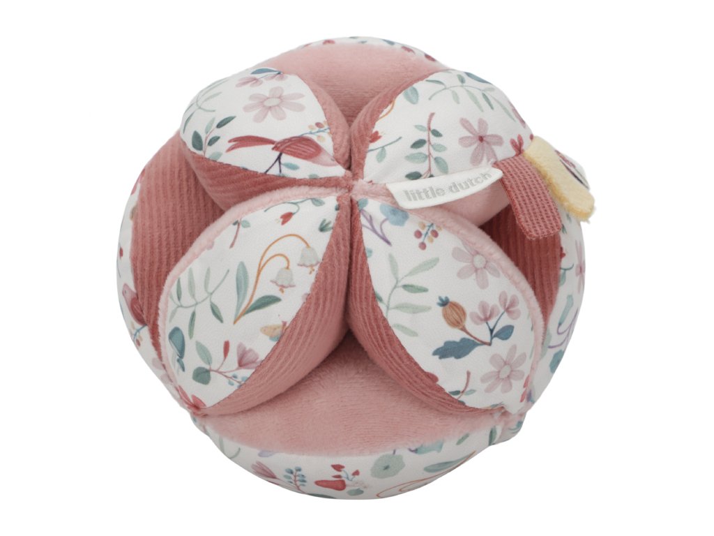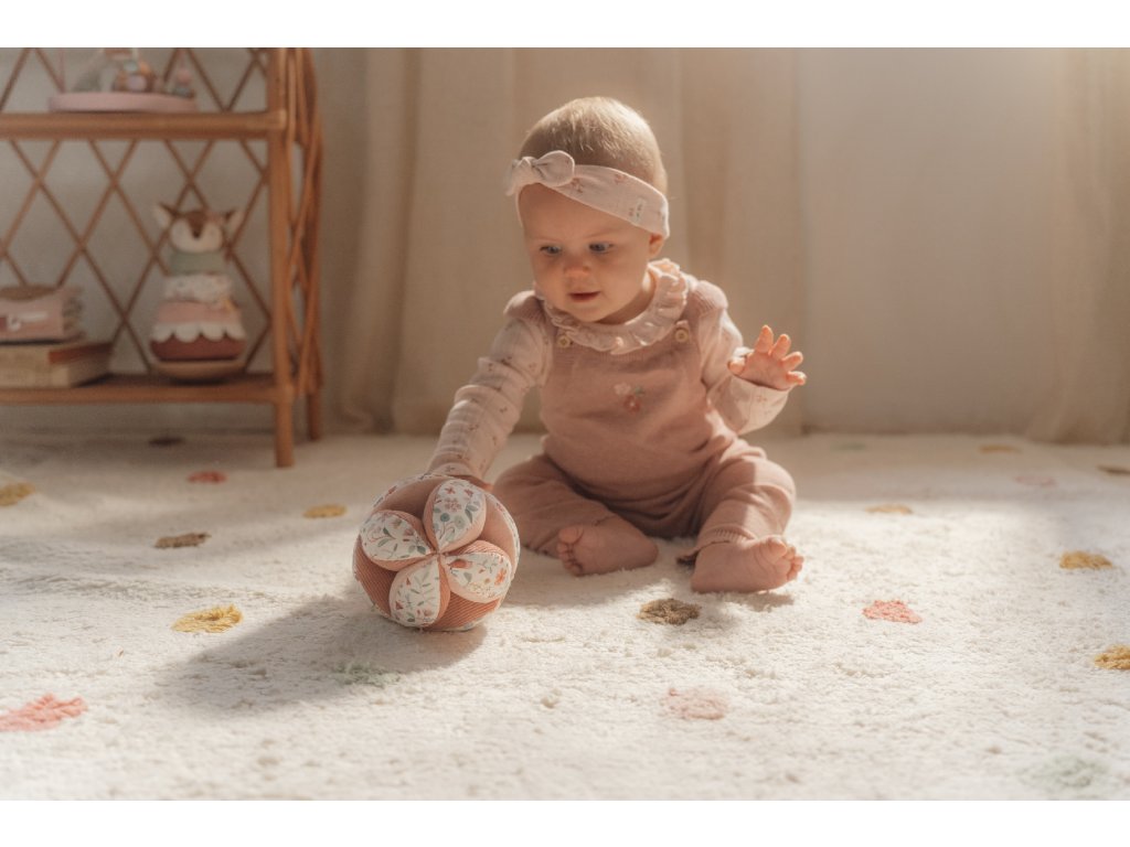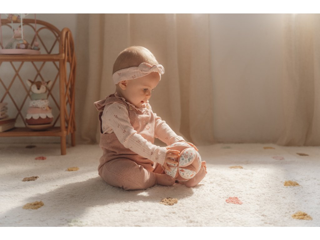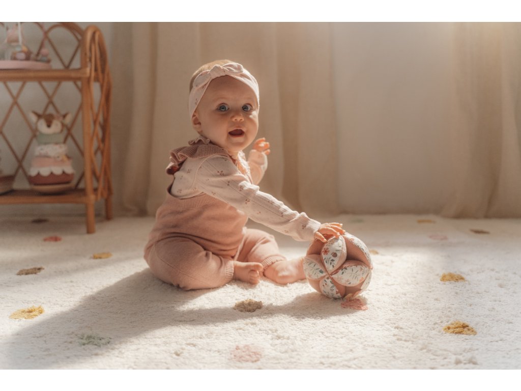 Měkký textilní míček je díky svému provedení snadno uchopenitelný malými dětskými ručičkami. Různorodé textury a vzory lákají dítě ke zkoumání, míček navíc při pohybu jemně cinká. Míček je součástí designové kolekce hraček a doplňků Little Dutch Fairy Garden inspirované životem na zahradě. Rozměry: 12 x 12 x 12 cm Vhodné pro děti od narození.Doplňkové parametry