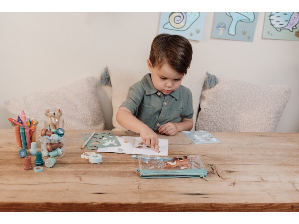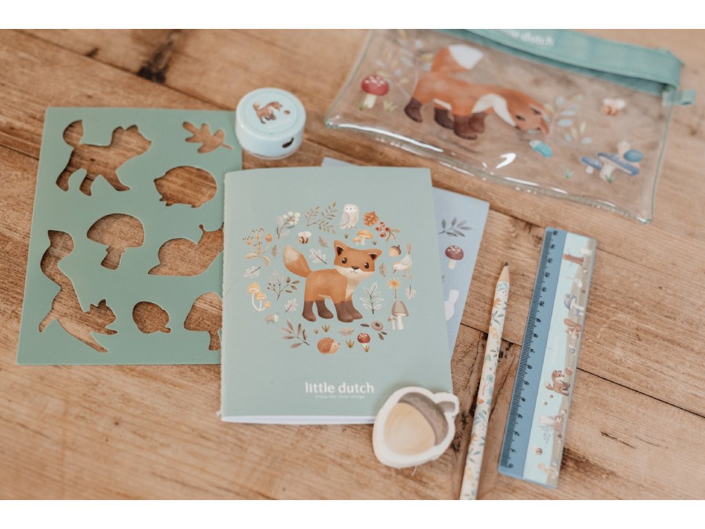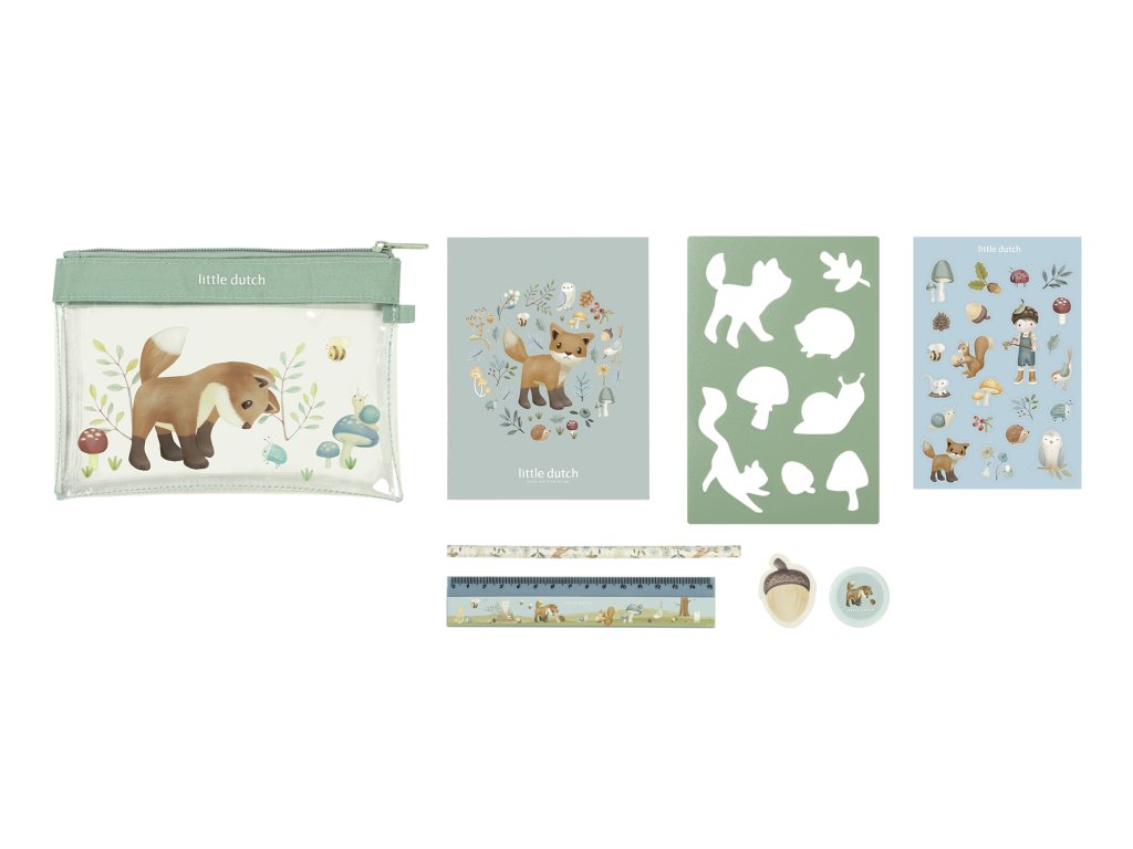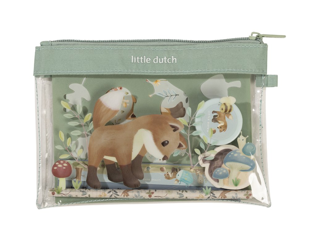 Sada výtvarných potřeb v krásném provedení s motivy života v lese obsahuje průhledné pouzdro na zip, sešit, samolepky, pravítko, gumu, ořezávátko a šablony. Sada je součástí designové kolekce hraček a doplňků Little Dutch Forest Friends inspirované životem v lese. Vhodné pro děti od 3 let.Doplňkové parametry