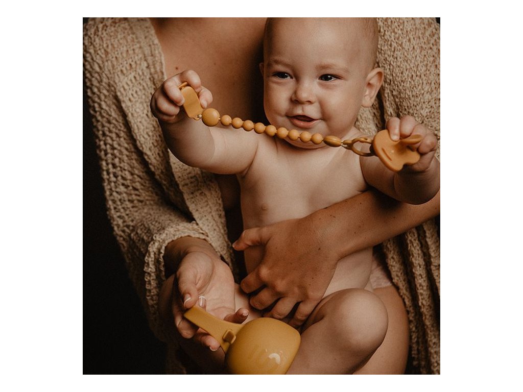 Rukojeť se přizpůsobí jakékoli tloušťce k zavěšení ke kočárku, postýlce nebo uložení do tašky: dudlíky zůstanou vždy čisté a připravené pro další použití. Krabičku udržujte v čistotě, myjte v teplé vodě s použitím saponátu určeného dětem. Občas doporučeno přelít horkou vodou, nevyvařovat ani nesterilizovat. Pouzdro na dudlíky není určeno ke hraní.