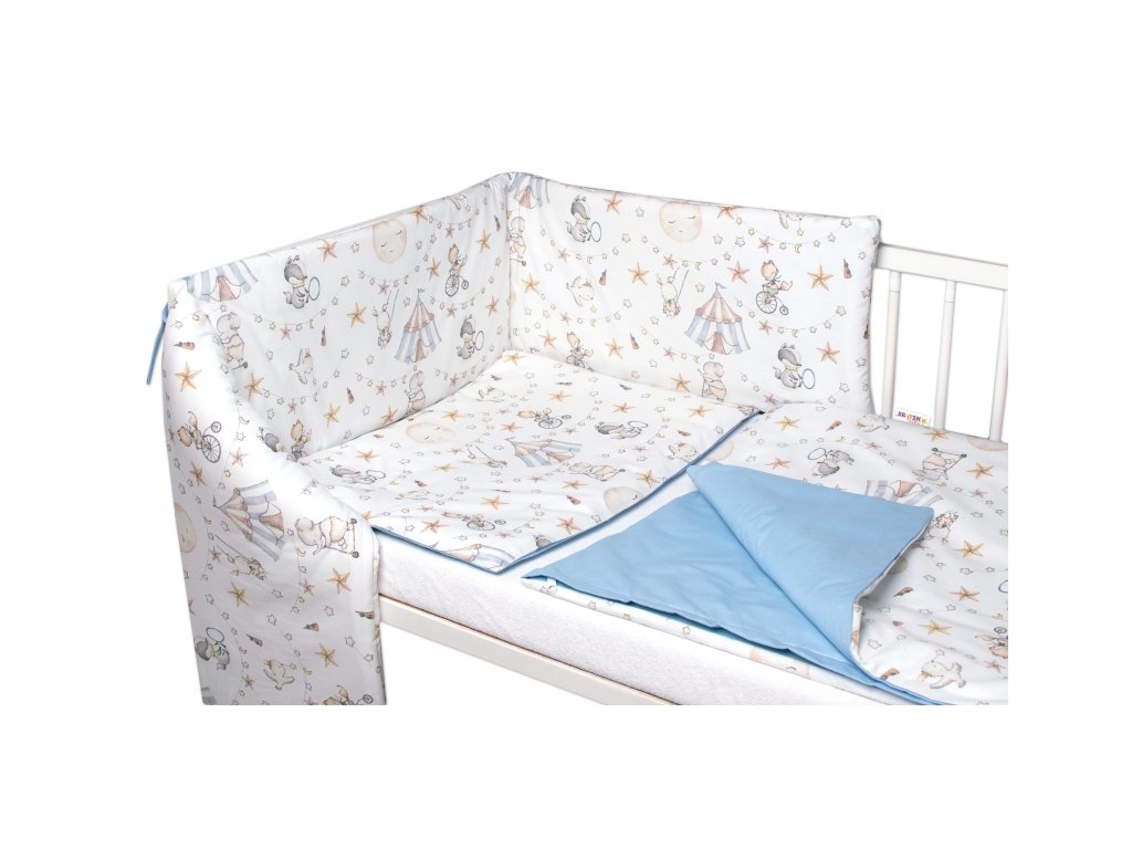 3-dílná sada Mantinel s povlečením Baby Nellys Cirkus, modrá/bílá