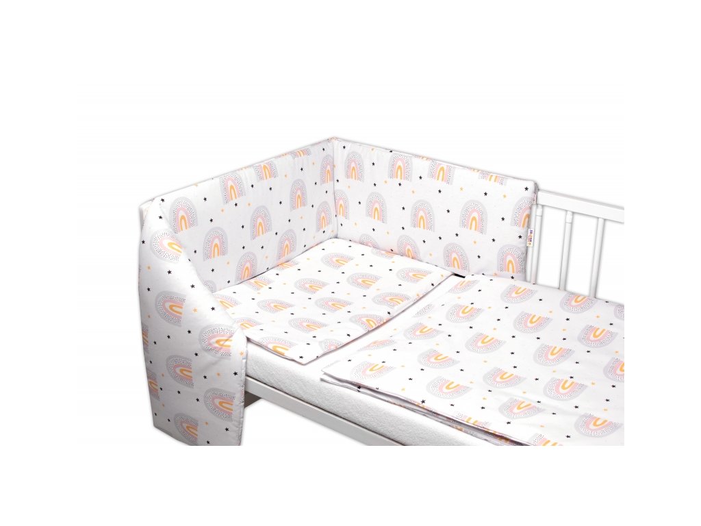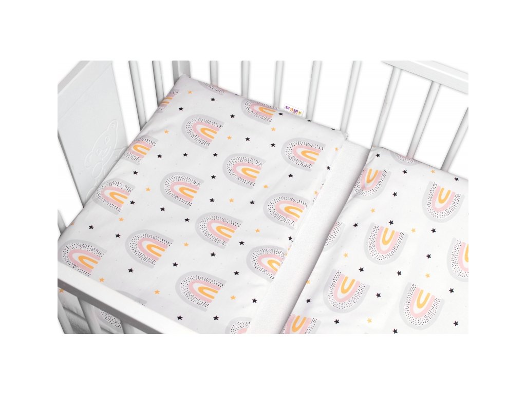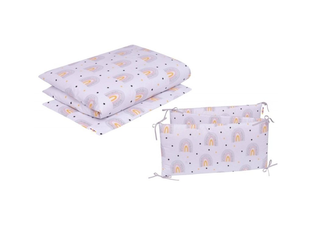 3-dílná sada Mantinel s povlečením Rainbow, bílá s potiskem