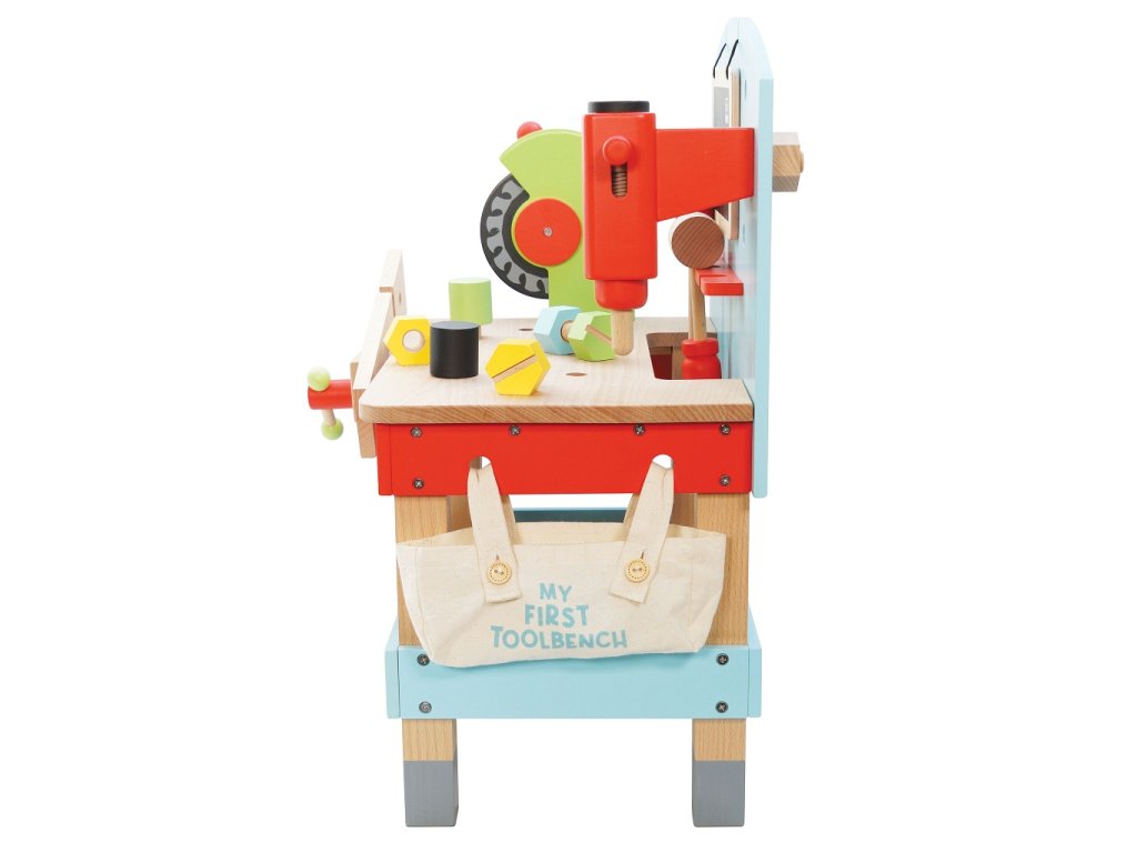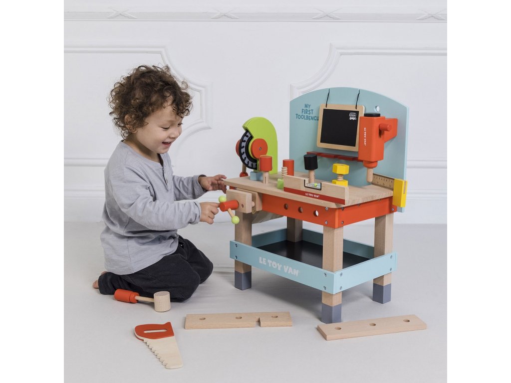 Připravte se na kutilskou zábavu s tímto dřevěným ponkem s nářadím. Obsáhlý set děti naučí mnoho o práci v dílně a manuální zručnosti. Ponk i doplňky jsou vyrobeny z pevného dřeva, vydrží vám opravdu dlouho. Mezi výbavou najdete vrtačku, cirkulárku, svěrák, pilu, kladivo, šroubovák, vodováhu, pravoúhlé pravítko, klíč a tabulku na křídu. Děti si při hraní na role užijí mnoho zábavy. Ponk má vespod polici, která slouží jako úložný prostor. Do dvou perforovaných dřevěných destiček mohou našroubovat šrouby i s matkami. Hračky s účelemVšechny hračky firmy Le Toy Van jsou vyrobeny s cílem – aby dlouho vydržely. Designovány s láskou zkušenými řemeslníky za použití etických praktik a udržitelných materiálů, které jsou laskavější k naší planetě. Hlavní vlastnosti: vyrobeno eticky z udržitelného FSC dřevatestováno dle nejpřísnějších standardůmalováno netoxickými barvami na bázi vodyinspiruje k představivé hřerozvíjí kognitivní dovednosti Ocenění hračky:Good Toy Guide Approved Auta & stavby: Stavební a motorická kolekce Le Toy Van, která vyhrála mnoho ocenění. Přesněji prozatím přes 15 ocenění za představivá auta a stavební hračky. Podporují dětskou fantazii, jsou ideální k představivé hře, rozvíjí kreativitu a hravě zlepšují dětskou koordinaci ruka‑oko. Značka a certifikát FSC® (Forest Stewardship Council) zaručuje, že dřevo, ze kterého byl produkt vyroben, nebylo vytěženo nelegálně a pochází z lesů obhospodařovaných šetrným či přírodě blízkým způsobem, ve kterém jsou dodržovány přísné environmentální a sociální požadavky. Značka FSC® na výrobku znamená, že svým nákupem pomáháte chránit lesy a podporujete šetrné, odpovědné či přírodě blízké hospodaření, díky kterému jsou naše lesy stabilnější, zdravější, mají přirozenou druhovou skladbu a lépe odolávají negativním následkům klimatických změn.Sizing info