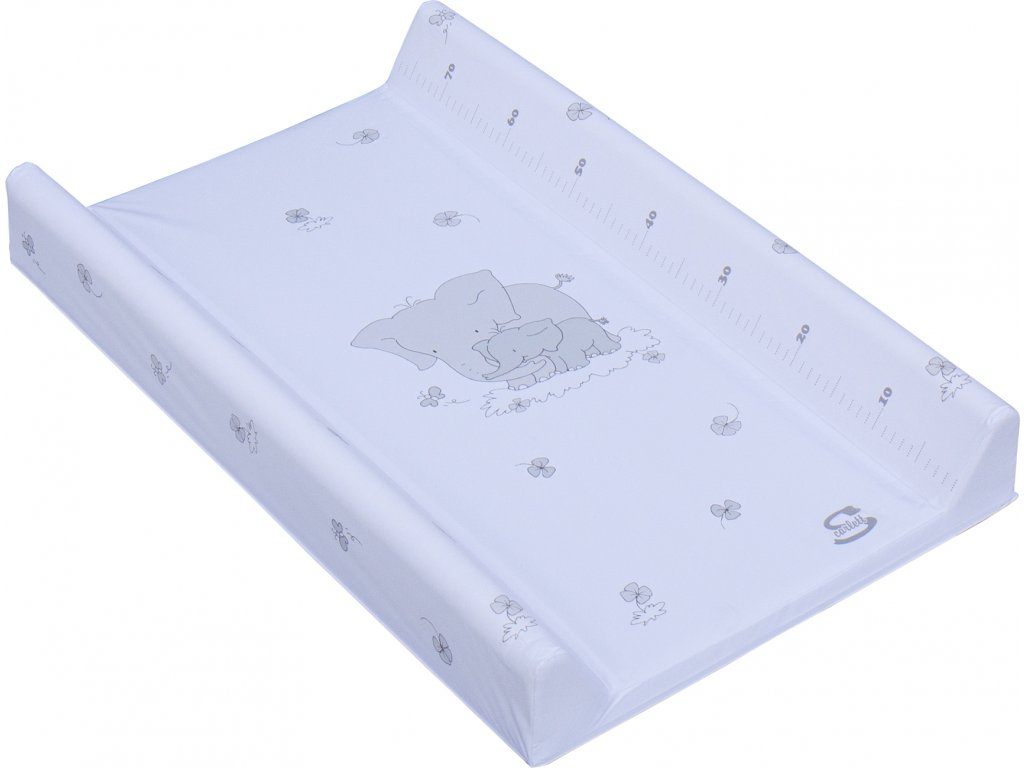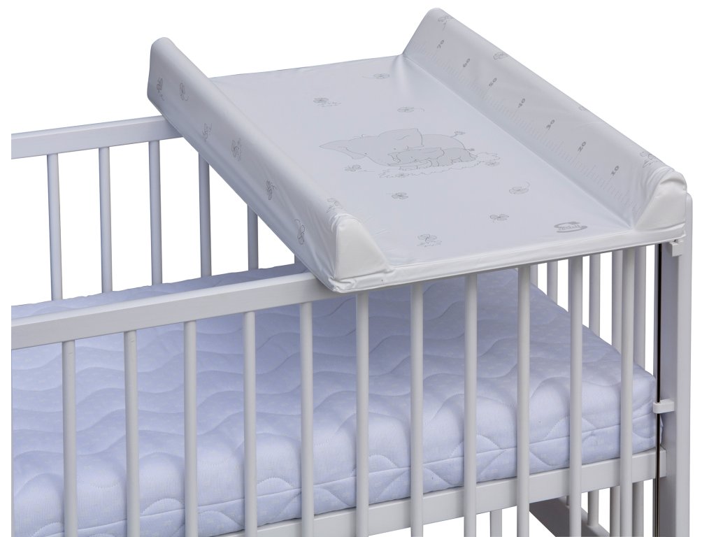 Přebalovací podložka s pevnou vložkou z MDF a profilovanými okraji s kvalitním PVC potahem bez ftalátů, vyplněná molitanem.