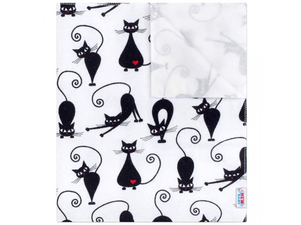 Nepromokavá flanelová podložka New Baby bílá s černou kočkou