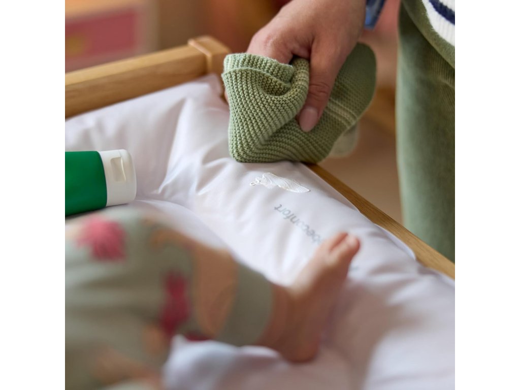 S přebalovacím pultem Bebeconfort Daisy bude každé přebalení jednoduché, hygienické a pohodlné – pro rodiče i miminko. Pult z kvalitního masivního dřeva je stabilní, kompaktní a svým minimalistickým designem skvěle zapadne do každého moderního interiéru. Nezabere zbytečně moc místa, ale zároveň nabídne dostatek prostoru pro přebalování i organizaci. Pohodlí pro miminko, praktičnost pro rodiče: Měkká přebalovací podložka s voděodolným povrchem pro maximální hygienu Extra polstrované boční strany pro bezpečné a pohodlné přebalování Úložná police pro vše potřebné na přebalování Voděodolný povrch umožňuje snadné čištění vlhkým hadříkem Rozměry: 50,5 × 87 × 71,4 cm Přebalovací plocha: 45 × 67,4 cm Hmotnost: 7,3 kg Nosnost: 11 kg Složení: 69 % masivní dřevo, 31 % překližka, podložka: 100 % EVA, výplň: 100 % polyesterová vlákna Balení obsahuje přebalovací pult a přebalovací podložku. Vhodné pro děti od narození do cca 1 roku (do 11 kg).Doplňkové parametry