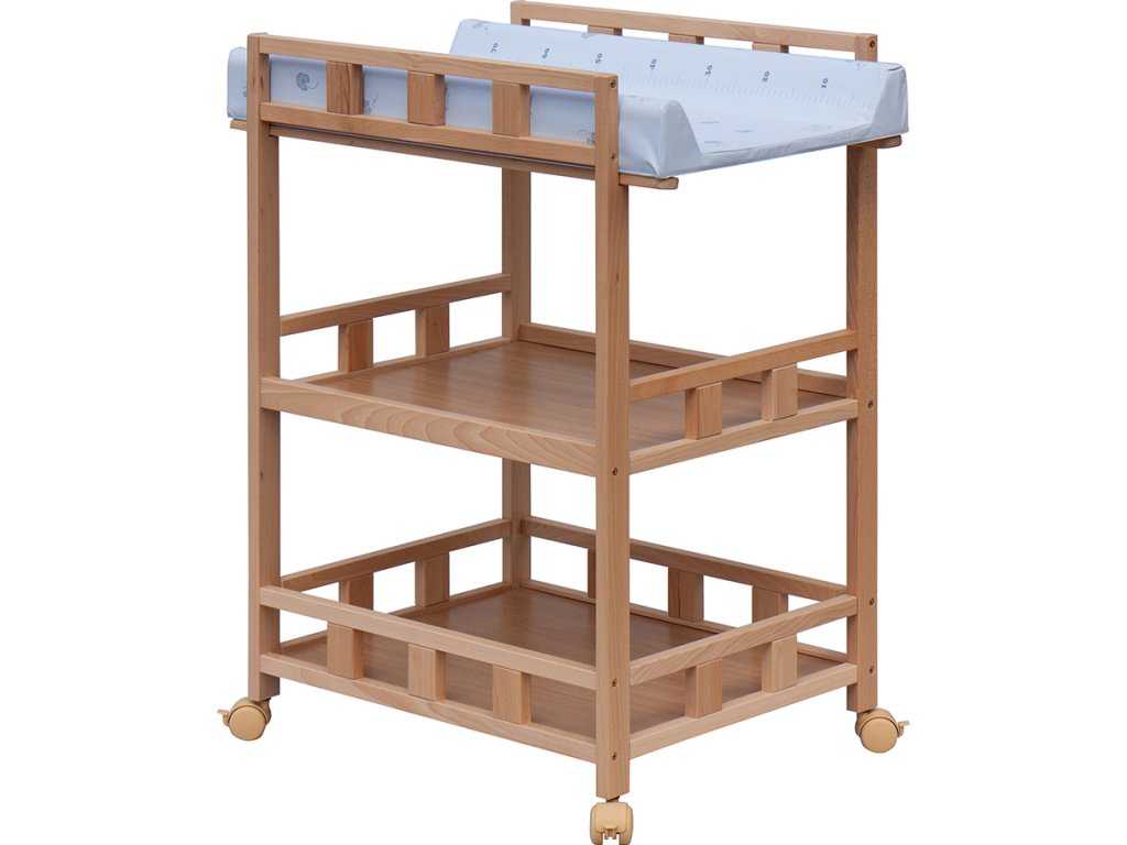 Praktický přebalovací pult se dvěmi policemi z HDF desky. Vrchní přebalovací pult z polyuretanu potažený omyvatelným PVC, vyztužený MDF deskou.