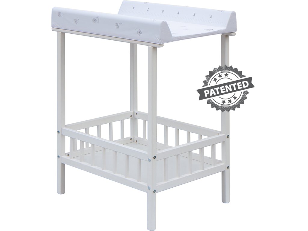 Praktický přebalovací pult se dvěmi policemi z HDF desky. Vrchní přebalovací pult z polyuretanu potažený omyvatelným PVC, vyztužený MDF deskou.