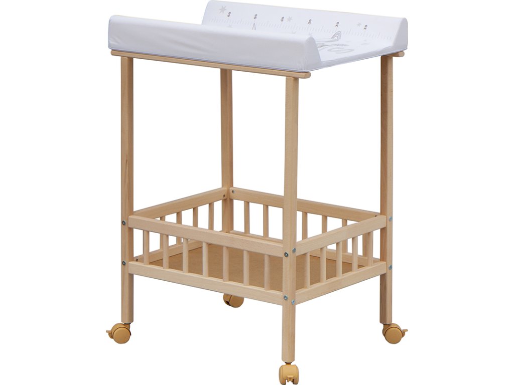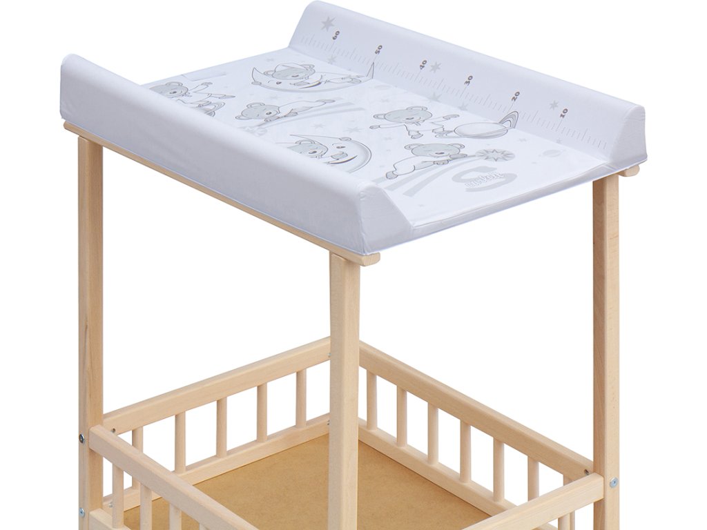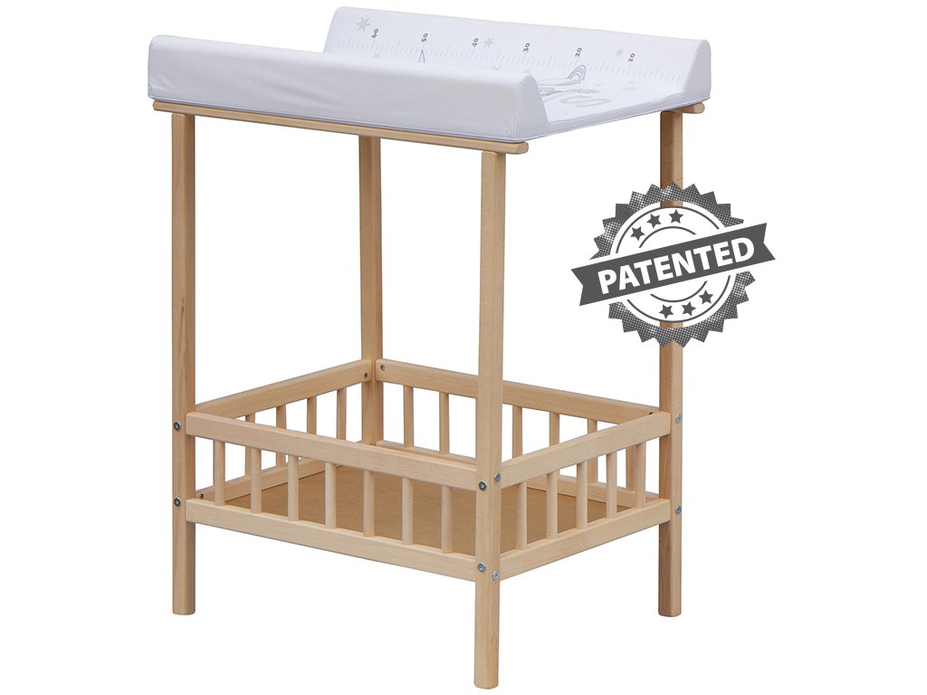 Praktický přebalovací pult se dvěmi policemi z HDF desky. Vrchní přebalovací pult z polyuretanu potažený omyvatelným PVC, vyztužený MDF deskou.