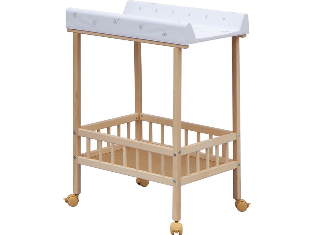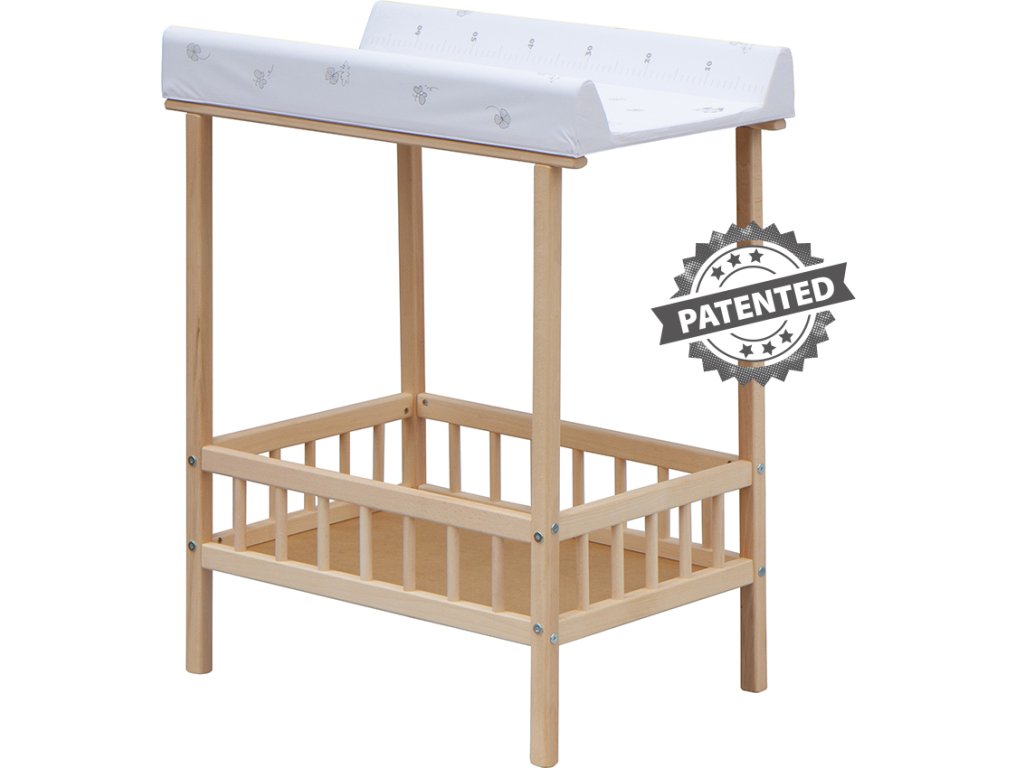 Praktický přebalovací pult se dvěmi policemi z HDF desky. Vrchní přebalovací pult z polyuretanu potažený omyvatelným PVC, vyztužený MDF deskou.