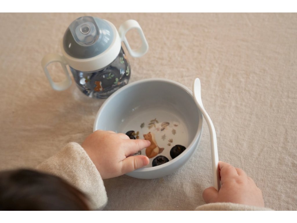 Plastové lžičky s dlouhou rukojetí jsou ideální pro první příkrmy. Mělké a úzké zakončení lžičky usnadňuje krmení miminka, dlouhá rukojeť umožňuje rodiči nabírání příkrmu i ze skleničky bez znečištění rukou. Praktické pouzdro umožňuje hygienické přenášení lžiček např. v přebalovací tašce. Lžičky jsou součástí designové kolekce hraček a doplňků pro děti Little Dutch Forest Friends, inspirované životem v lese. Délka lžičky: 14,5 cm Materiál: PP, neobsahuje BPA Možno mýt v myčce. Vhodné pro děti od 4 měsíců.Doplňkové parametry