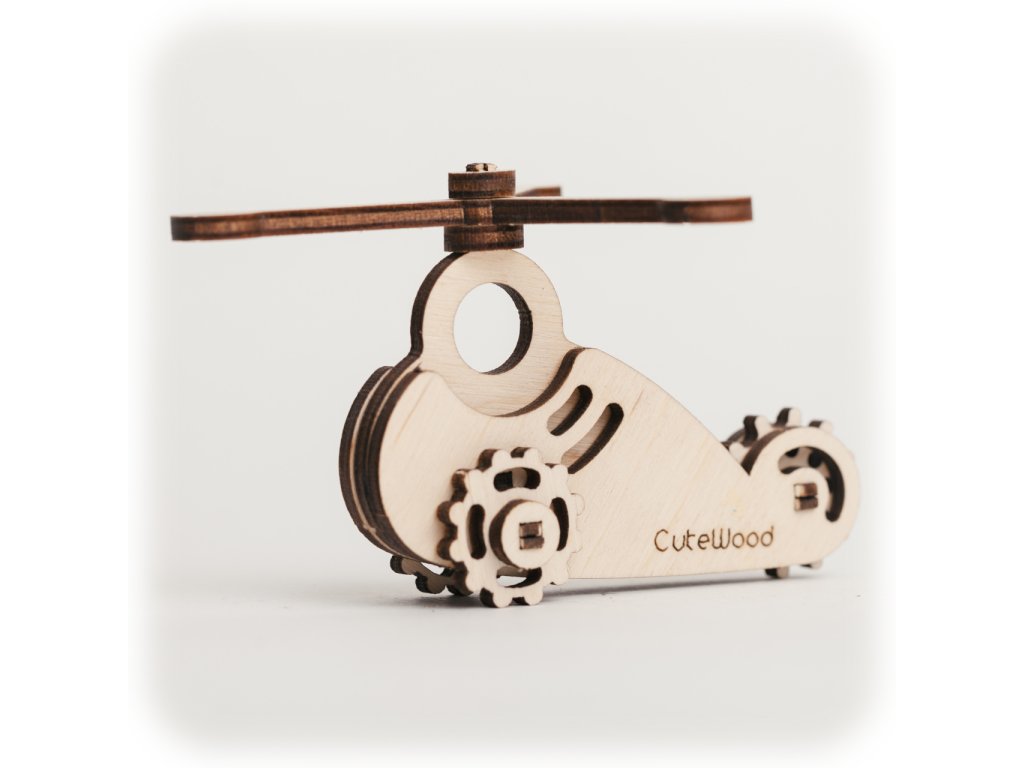 CuteWood Dřevěné 3D puzzle Vrtulník 2