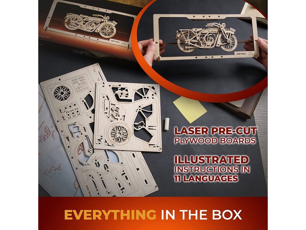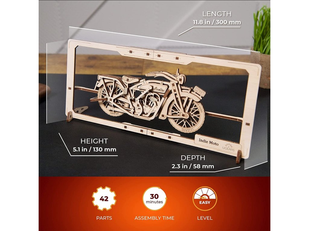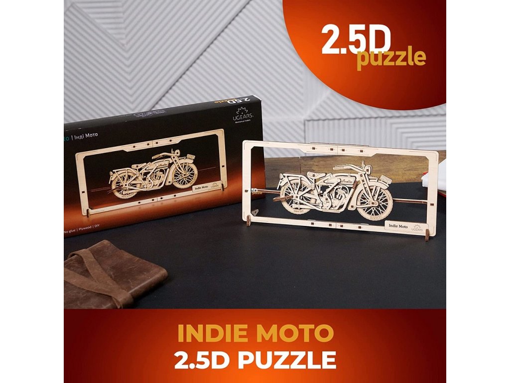 Ugears 2,5D dřevěné mechanické puzzle Indie Moto