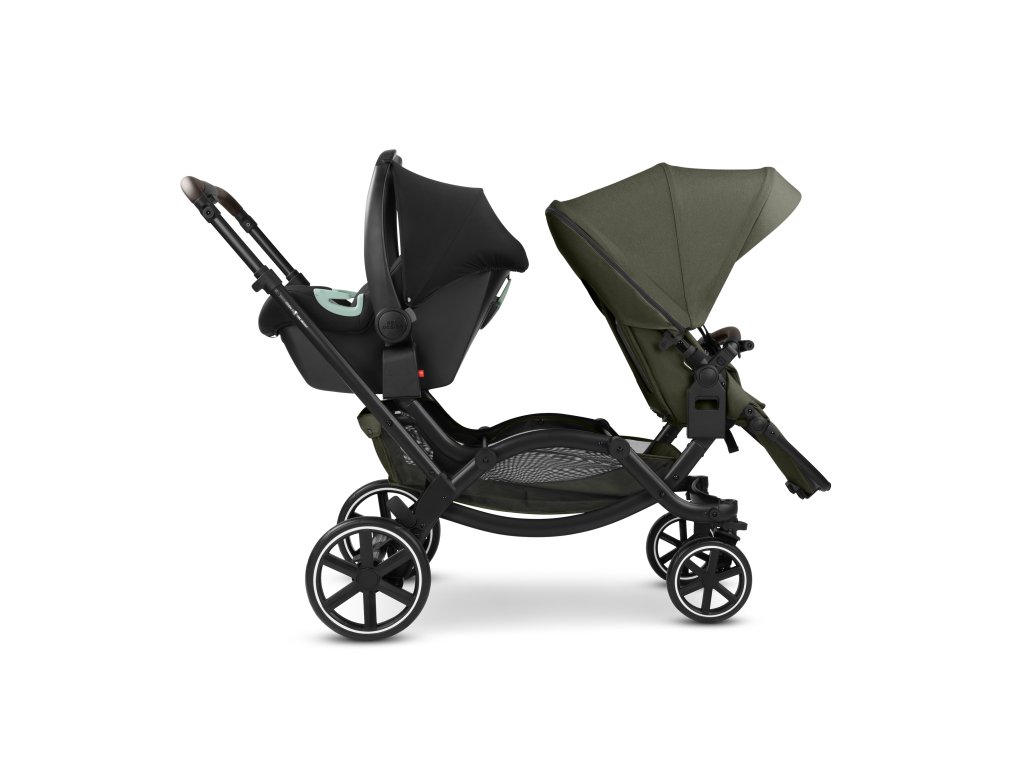 5bodový pásový systém HappyBelt® zajišťuje bezpečné držení v sedačce Bezpečné připnutí pásu je snadné díky inovativnímu systému pásů. Velká úleva v každodenním životě, zvláště když potřebujete co nejrychleji zajistit dvě děti v kočárku. Ramenní popruhy, které mírně vyčnívají z opěradla, a magnetické zapínání přezky pásu usnadňují zapínání, plynulé nastavení pásu, přístupné zepředu, zajišťuje dokonalé uchycení. Perfektní kočárek pro dva.