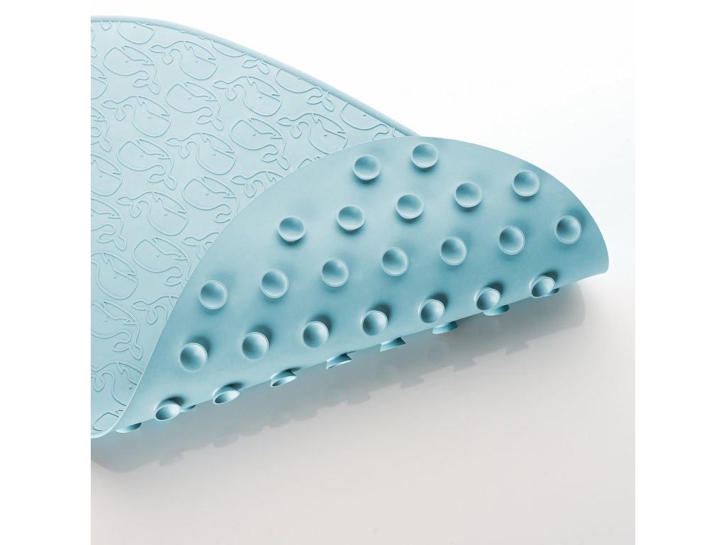 Podložka je vyrobena z přírodního materiálu podobnému gumě. Díky přirozené protiskluznosti materiálu poskytuje koupelnová podložka vašemu miláčkovi bezpečnou ochranu proti uklouznutí na hladkém povrchu. Svršek je navíc opatřen strukturou v roztomilém velrybím designu, která má navíc protiskluzový efekt.