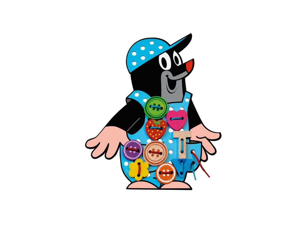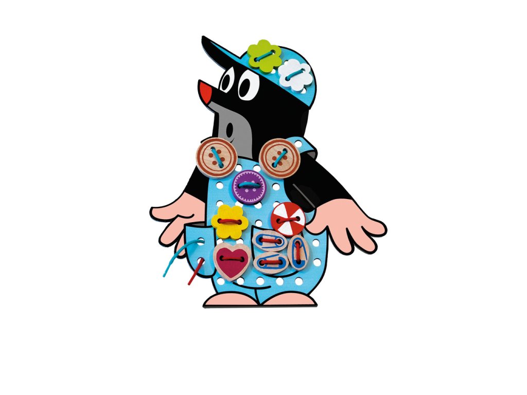 Přišívání dřevěných dílků různých tvarů s potiskem na kartonové předloze ve tvaru oblíbené animované postavičky Krtečka. Balení obsahuje: 1 oboustranná kartonová předloha, 23 dřevěných dílků s potiskem a 2 šňůrky. Hlavní vlastnosti: výrobek splňuje požadavky EU na bezpečnost hračekvhodný pro děti od 3 lethra rozvíjí jemnou motoriku rukou, kreativitu a trpělivost dětíSizing info