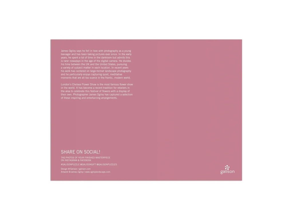 Puzzle představuje fotografie města Londýn zahaleného do květin pro krásný a náročný zážitek z puzzle. Puzzle je baleno v pevné krabici, pro opětovné použití a skladování. Ideální jako dárek. Autorem obrázku je James Ogilvy. Puzzle jsou vyrobeny za použití významného podílu recyklovaného papíru a nabízí špičkový potisk nezávadnými barvami. Jsou opatřeny matnou povrchovou úpravou, která zajišťuje za všech okolností věrné podání detailů i barev. Jejich zadní strana je potažena hladkým, na dotek příjemným povrchem, díky němuž se při skladování rozloženého puzzle netvoří prach. Spolu s pečlivě zabalenými dílky naleznete v balení také letáček s návodným obrázkem, který zpravidla obsahuje další informace o tvůrcích a pozadí vzniku díla. Dodáváno v mimořádně pevné a poutavě zpracované kartonové krabičce vyrobené z recyklovaného kartonu a udržitelně získaných materiálů s certifikací FSC®. Hlavní vlastnosti: 1000 precizně vyřezaných dílkůvyrobeno s použitím recyklovaných a udržitelně získaných materiálůpečlivě vybraný motiv od renomovaných tvůrců a umělcůpotisk a provedení nejvyšší kvalityobsahuje návodný obrázekSizing info