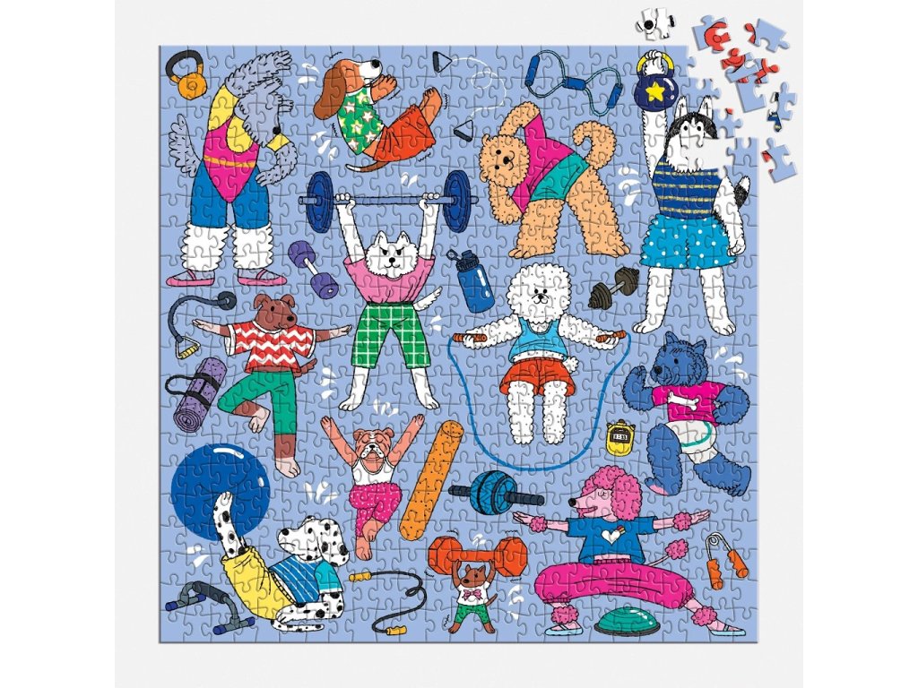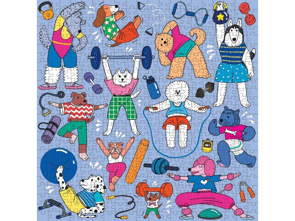 Puzzle obsahuje zábavné ilustrace psů cvičících v tělocvičně. Puzzle je baleno v pevné krabici, pro opětovné použití a skladování. Ideální jako dárek. Puzzle jsou vyrobeny za použití významného podílu recyklovaného papíru a nabízí špičkový potisk nezávadnými barvami. Jsou opatřeny matnou povrchovou úpravou, která zajišťuje za všech okolností věrné podání detailů i barev. Jejich zadní strana je potažena hladkým, na dotek příjemným povrchem, díky němuž se při skladování rozloženého puzzle netvoří prach. Spolu s pečlivě zabalenými dílky naleznete v balení také letáček s návodným obrázkem, který zpravidla obsahuje další informace o tvůrcích a pozadí vzniku díla. Dodáváno v mimořádně pevné a poutavě zpracované kartonové krabičce vyrobené z recyklovaného kartonu a udržitelně získaných materiálů s certifikací FSC®. Hlavní vlastnosti: 500 precizně vyřezaných dílkůvyrobeno s použitím recyklovaných a udržitelně získaných materiálůpečlivě vybraný motiv od renomovaných tvůrců a umělcůpotisk a provedení nejvyšší kvalityobsahuje návodný obrázekSizing info
