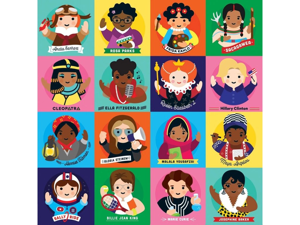 500dílné puzzle se skládá z barevných ilustrovaných portrétů skutečných žen, které historicky ovlivnily svět. Ilustrace Lydie Ortiz seznamují děti s těmito významnými lidmi v historii pomocí obrázků, které jsou zábavné a realistické. Puzzle zahrnuje umělkyně, kterými jsou Maya Angelou, Josephine Baker, Frida Kahlo a Ella Fitzgerald, zahrnuje i vůdkyně jako Kleopatra, královna Alžběta I., Indira Gandhi a Hillary Clinton, zahrnuje také aktivistky - Harriet Tubman, Rosa Parks, Gloria Steinem a Malala Yousafzai a zobrazuje také průkopníce, jako je Marie Curie, Sally Ride, Amelia Earhart a Billie Jean King. Hlavní vlastnosti: obsahuje 500 dílkůvyrobeno z recyklovaných materiálůtištěno netoxickými inkoustyilustrace Lydie OrtizSizing info